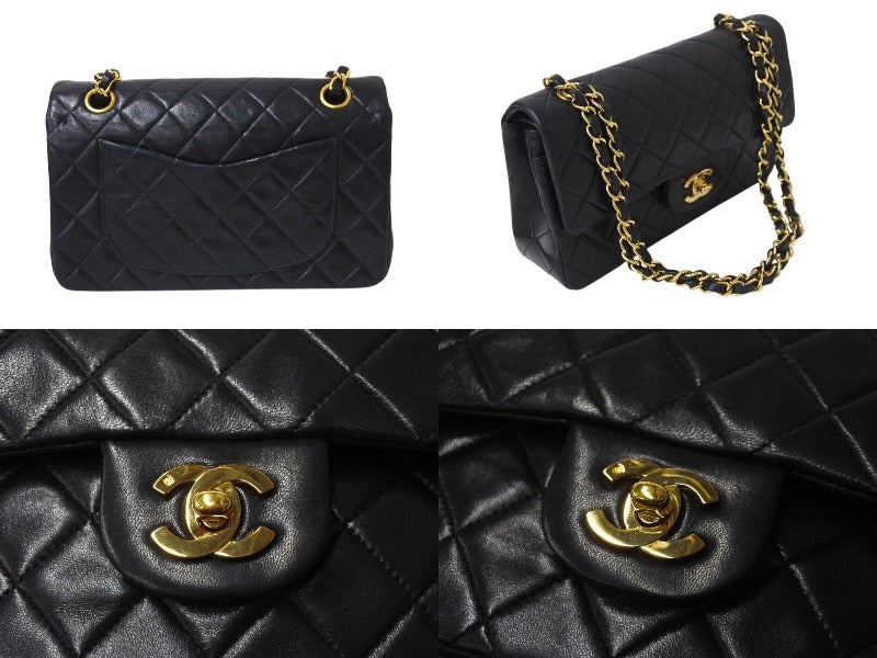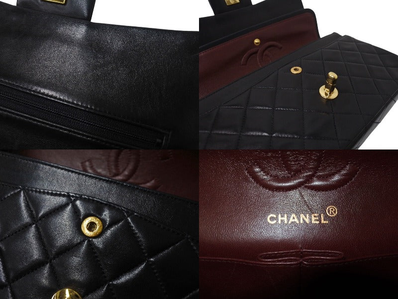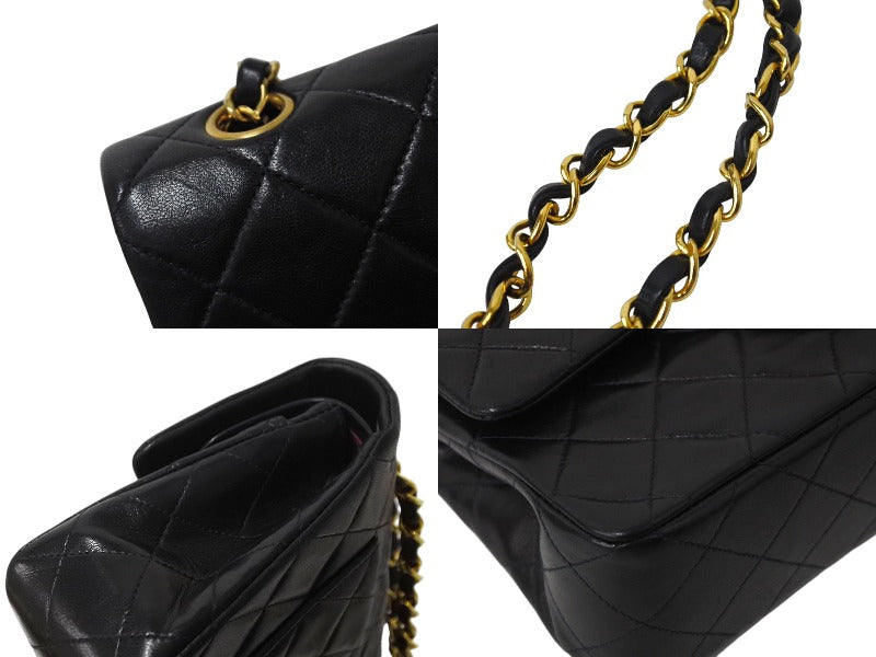 極美品 CHANEL シャネル マトラッセ23 Wフラップ チェーン ショルダーバッグ ラムスキン 4番台 ブラック ゴールド金具 中古 4c070971