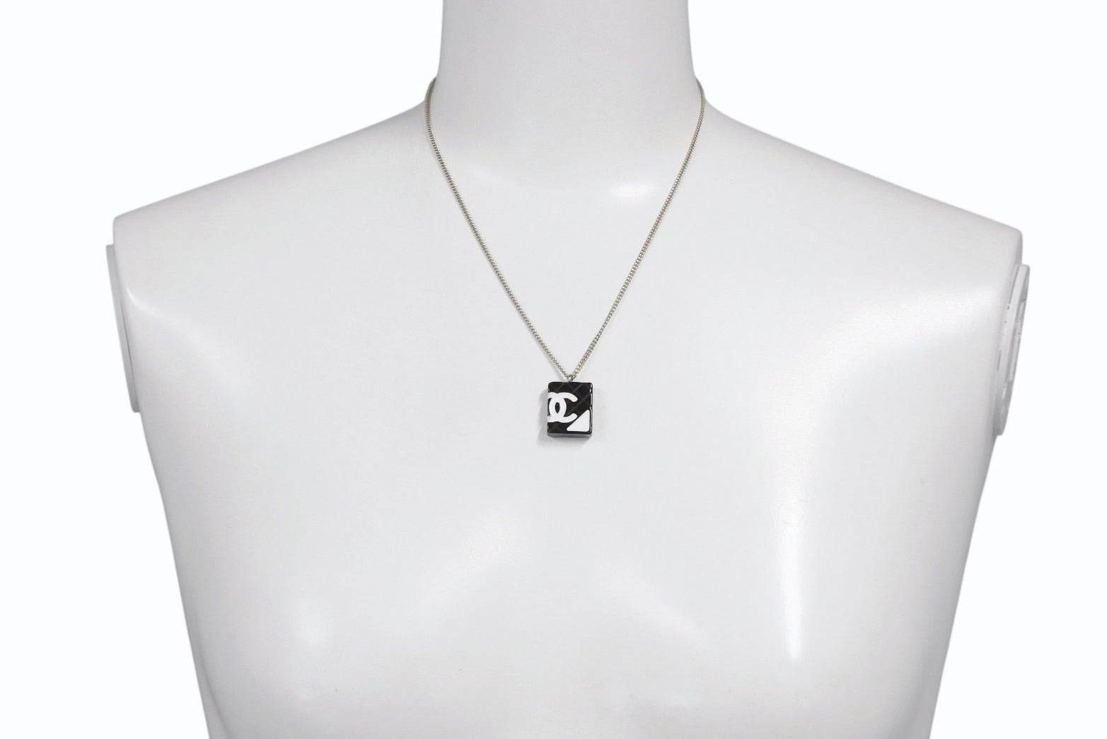 CHANEL シャネル ネックレス ココマーク カンボンライン 05C刻印 プラスチック メタル ブラック ホワイト ゴールド金具 美品 中古 4c073901