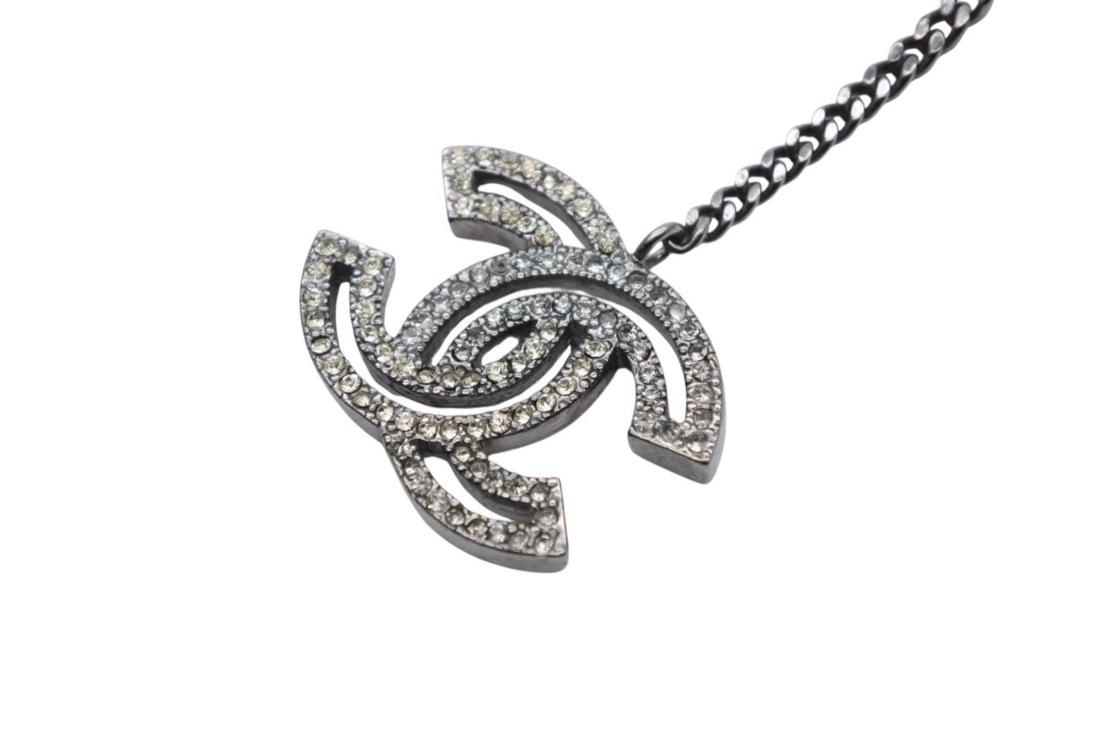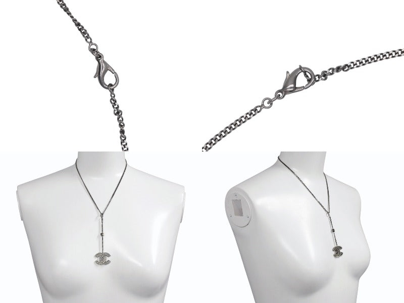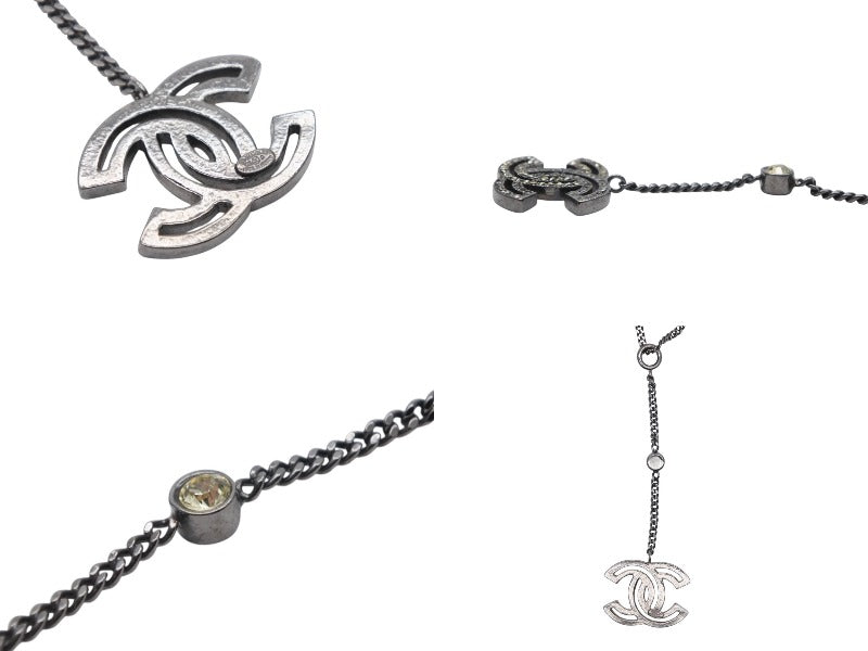CHANEL シャネル ココマーク ネックレス 重量約12.7g メタル ブラック ライトストーン 美品 中古 4c074869