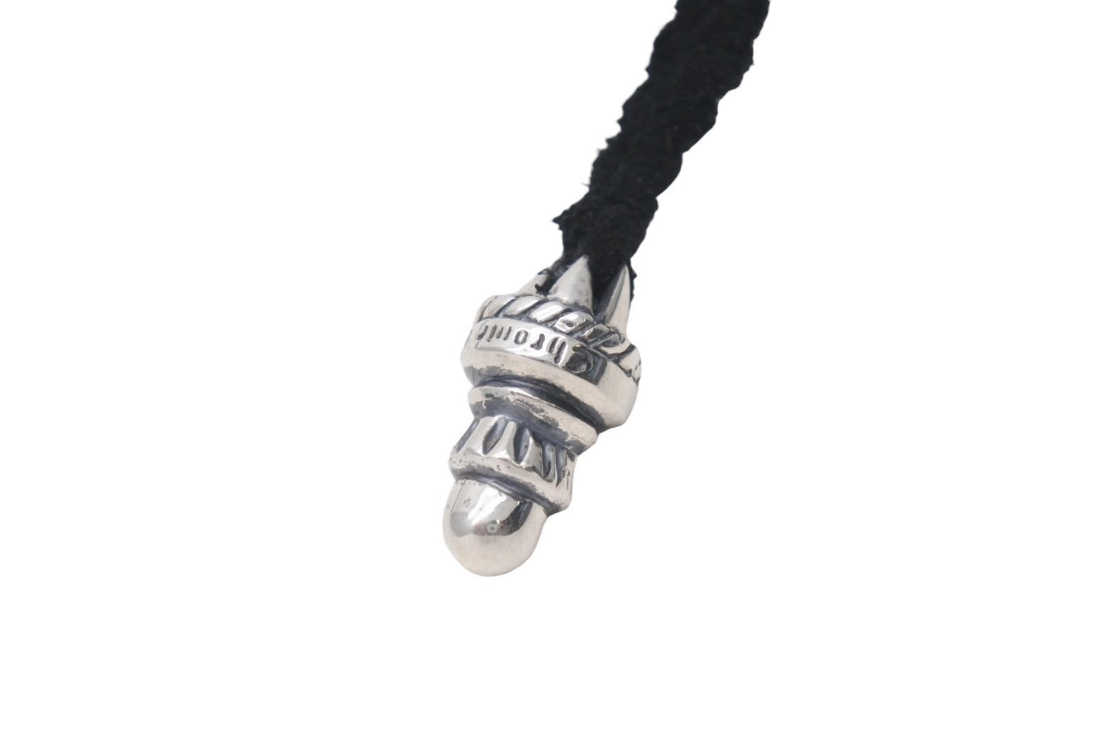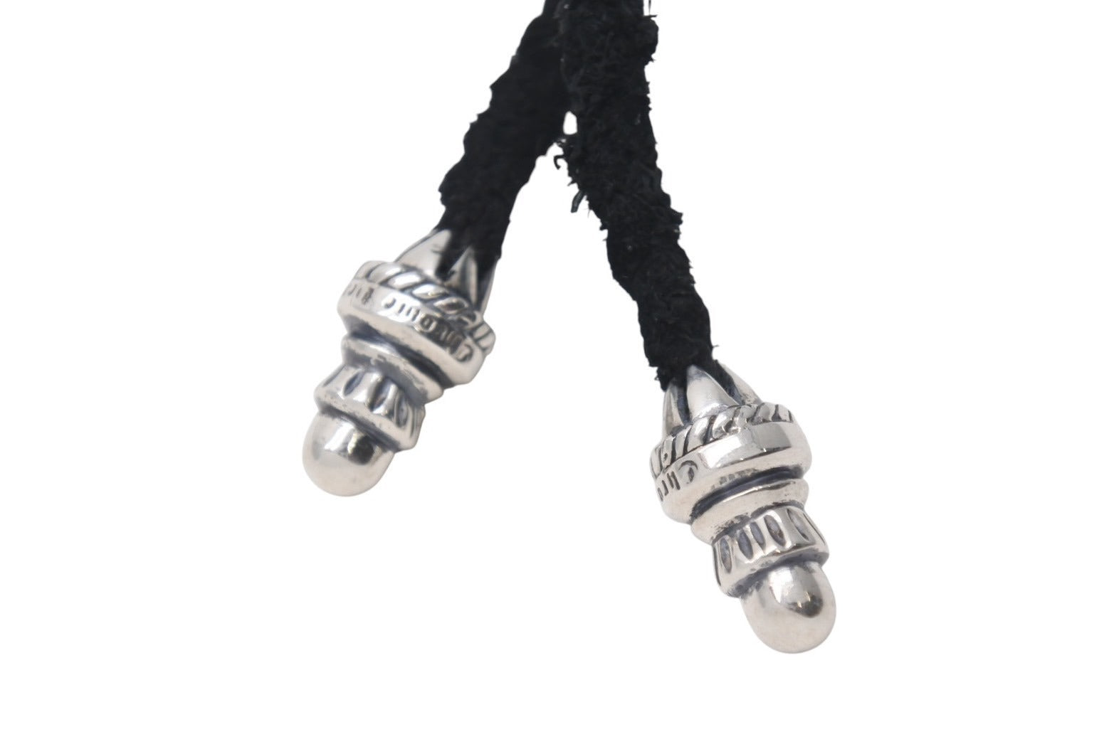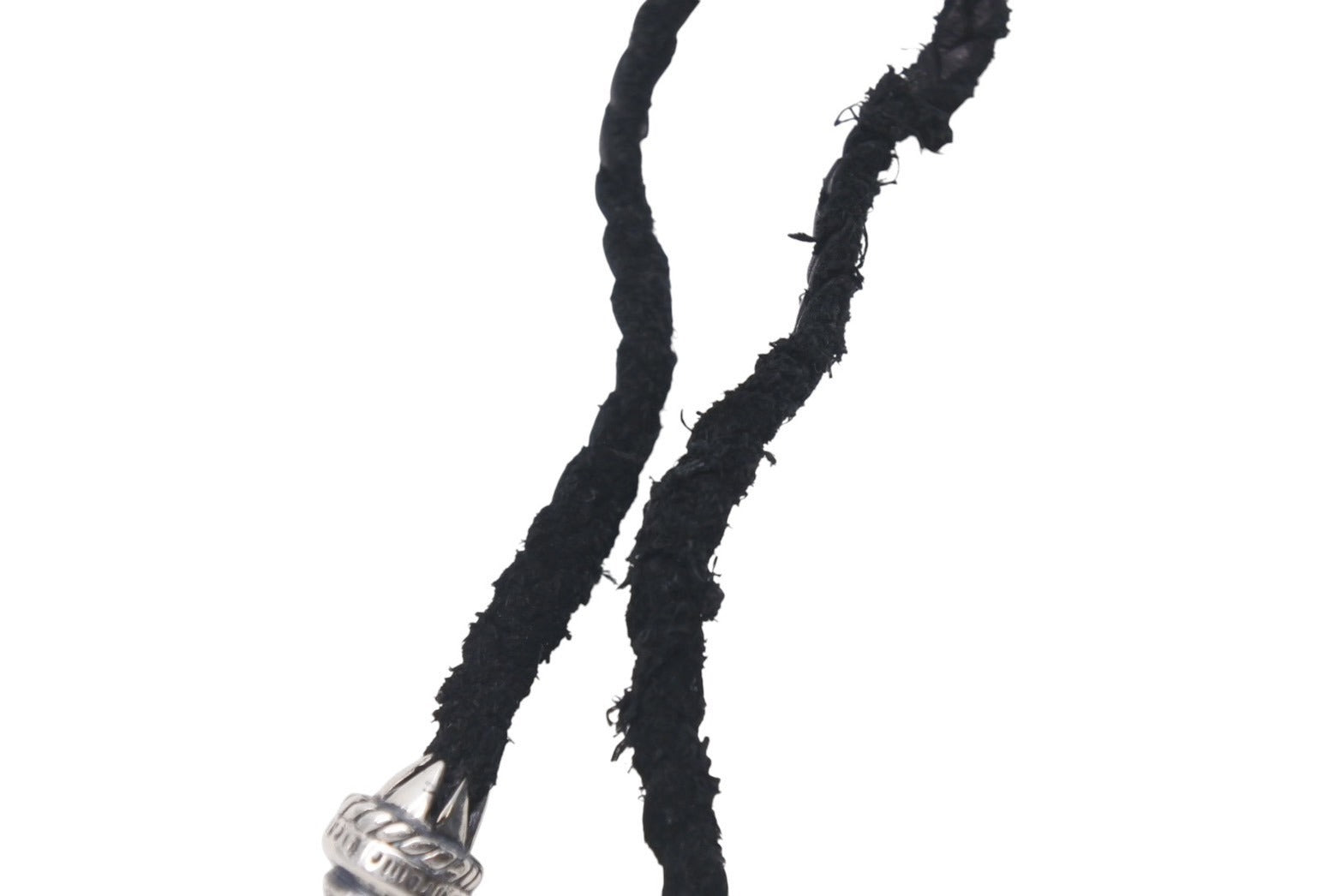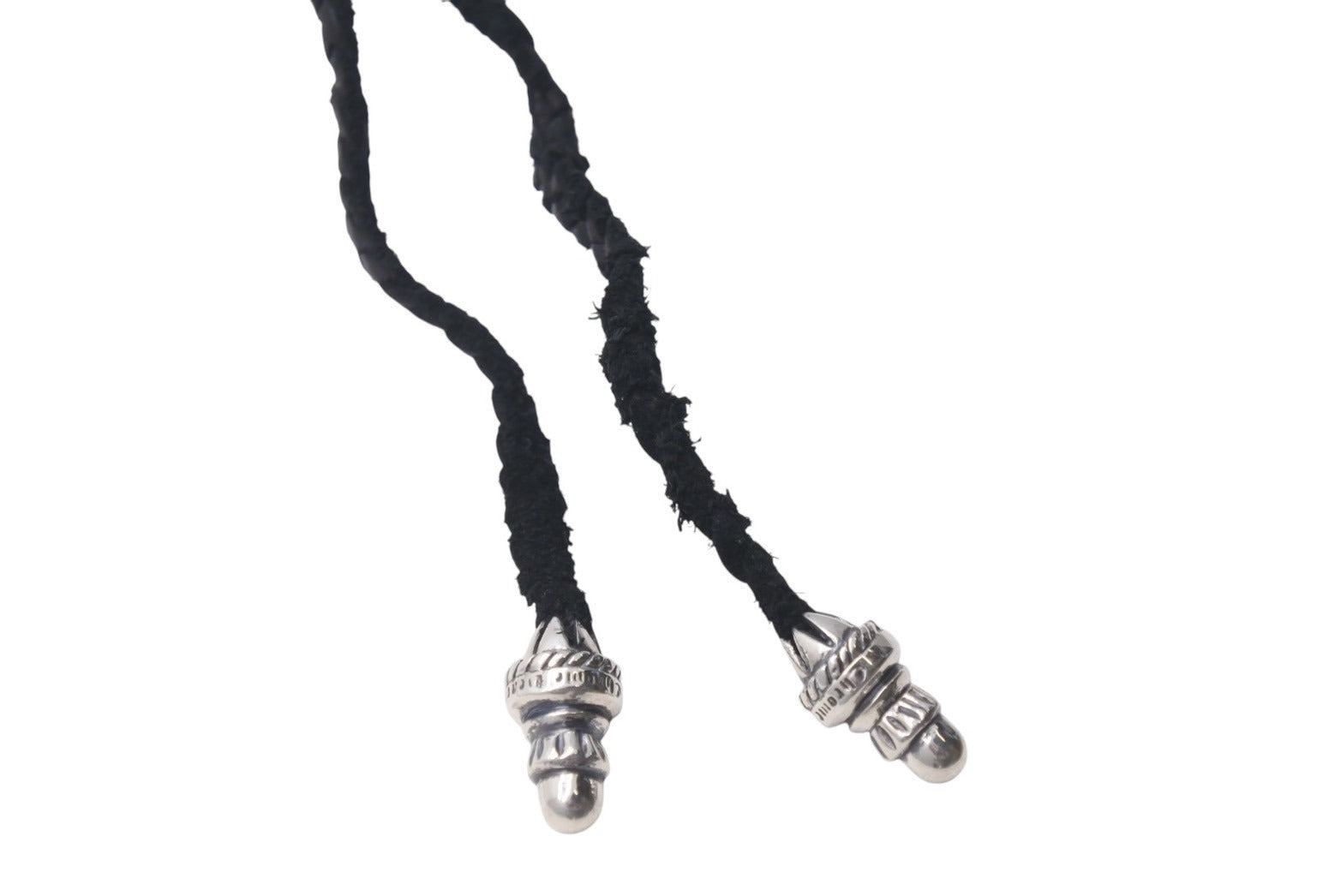 クロムハーツの上質な革を丁寧に編みこまれた先端に、ボロチップがついた革紐のネックレスです。