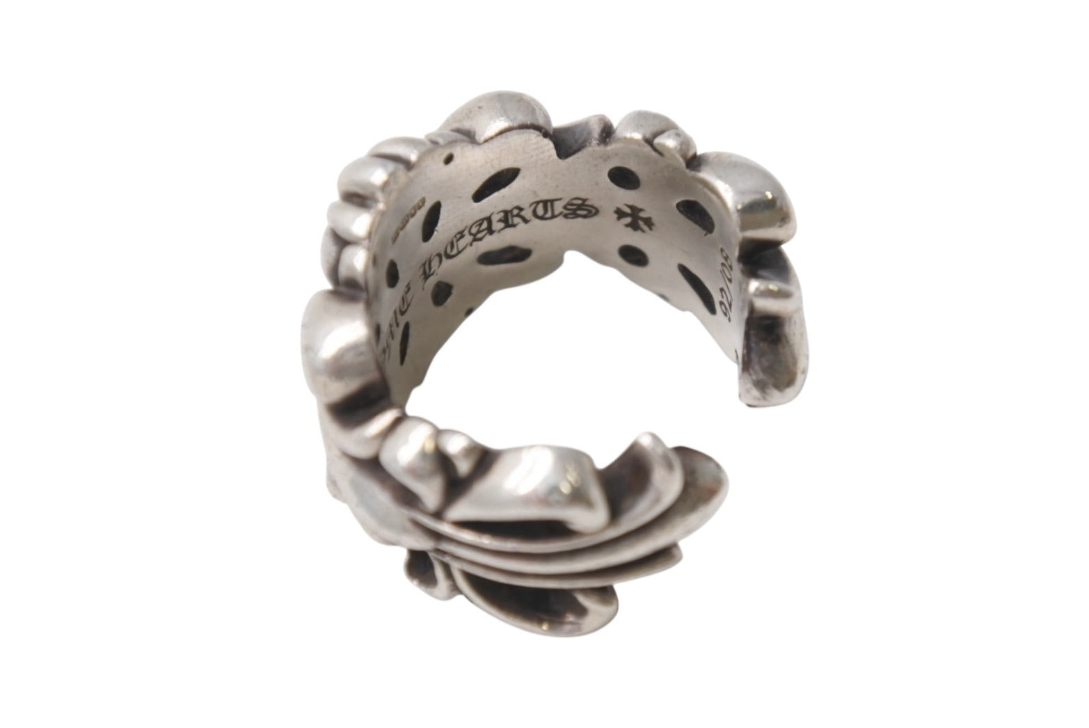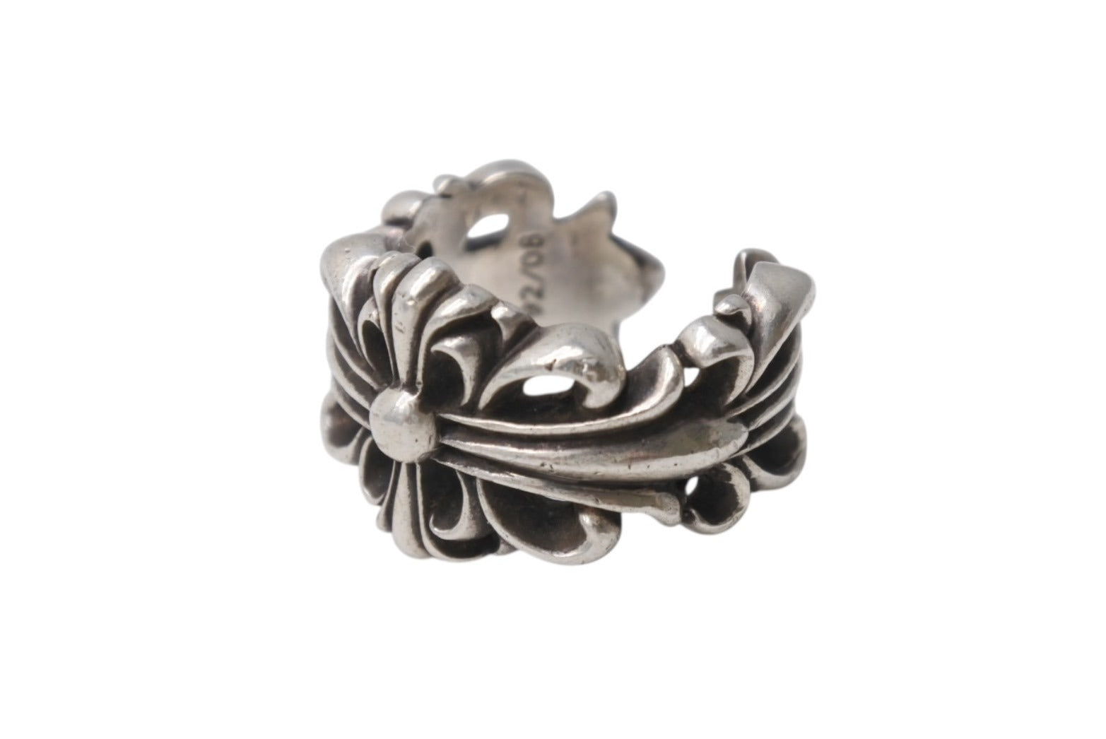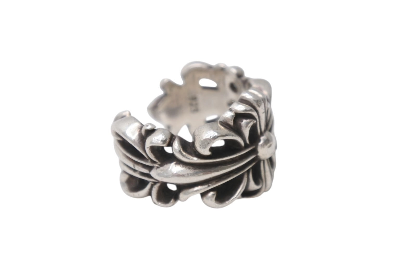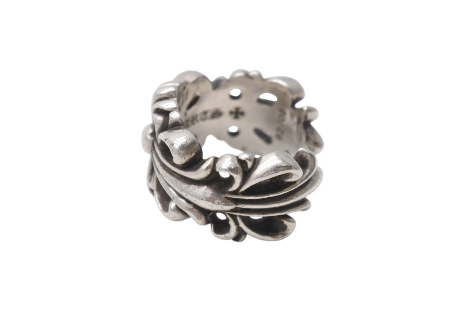 まるで花が咲いたかのように手元を彩る「ダブルフローラルクロスリング」。 花が指に巻き付いたかのように見える、美しく品のあるデザインに仕上げられています。 男性的な無骨なデザインの多かったクロムハーツも、花をモチーフにしたこちらのリングはレディースアイテムとしても人気の高いリングです。