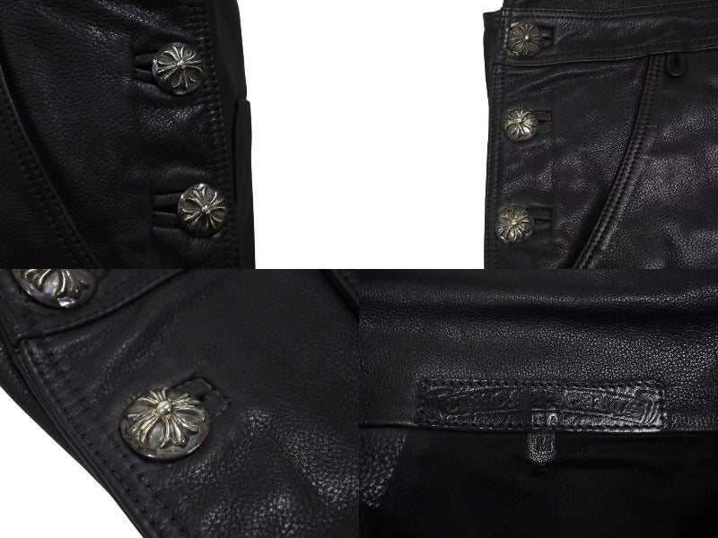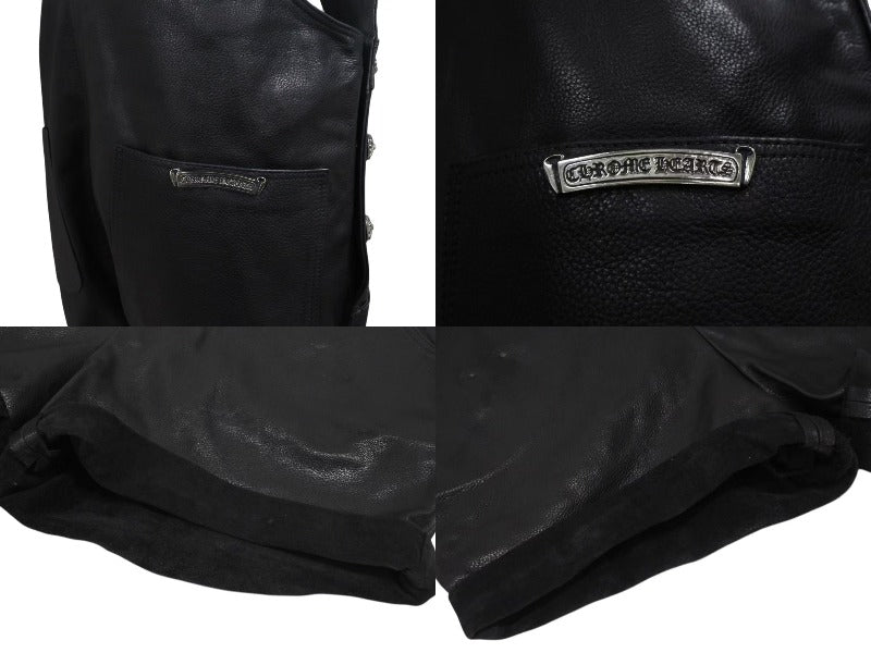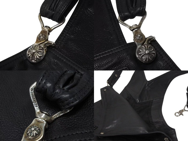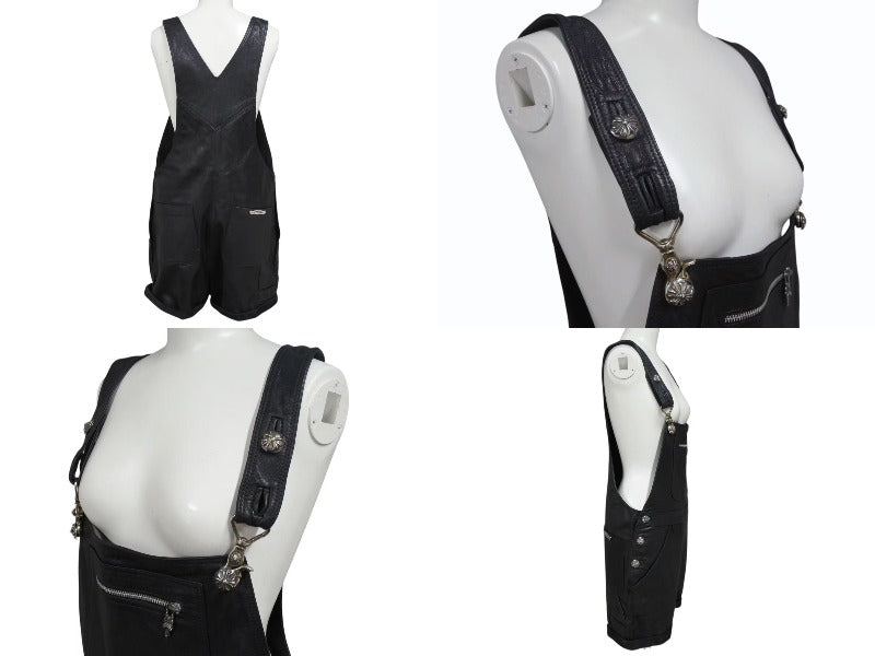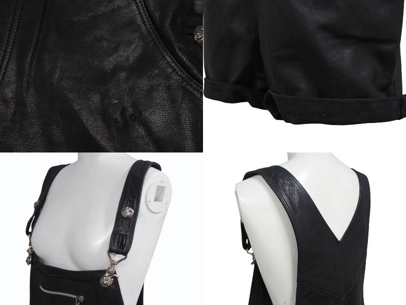 CHROME HEARTS クロムハーツ レザーサロペット サイズM クロスボールボタン ダガージップ シルバー925 ブラック 美品 中古 4b001952