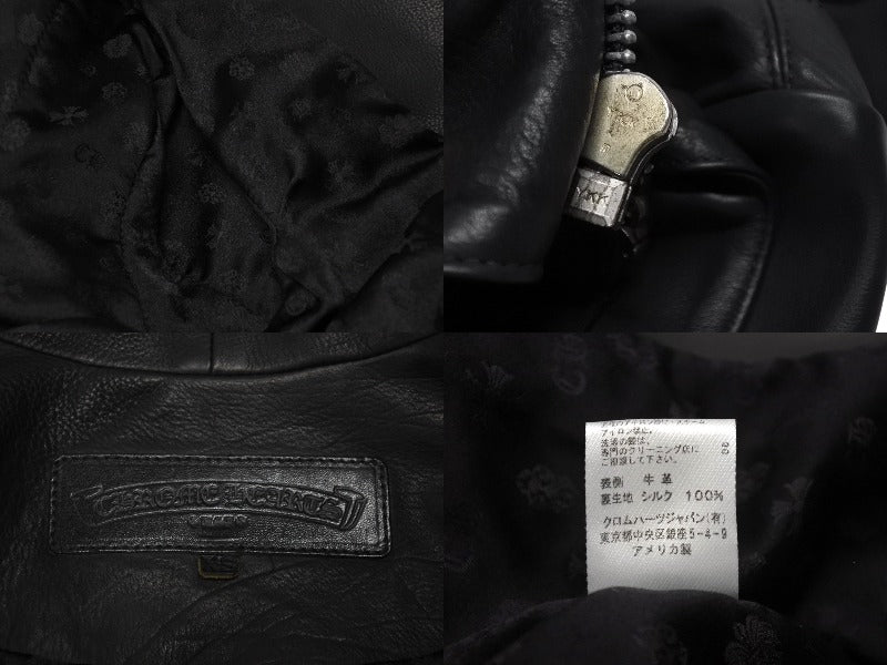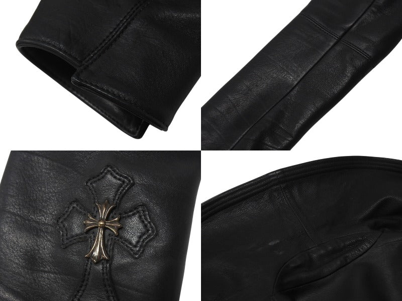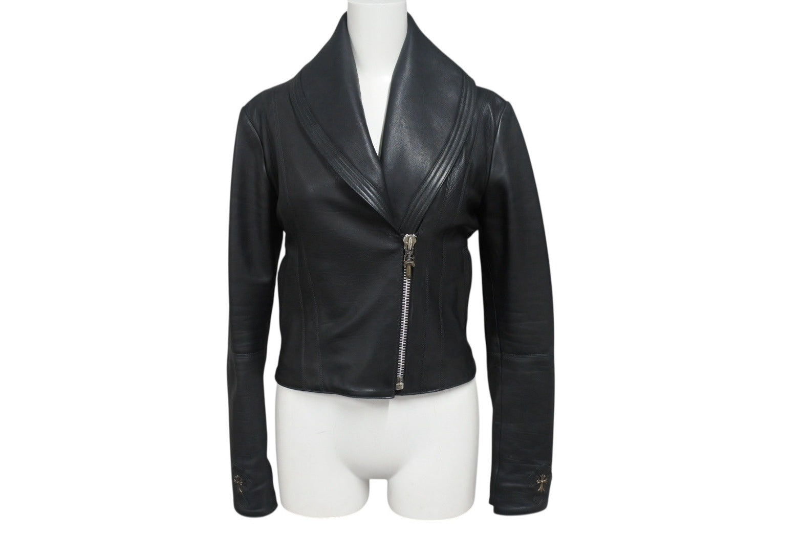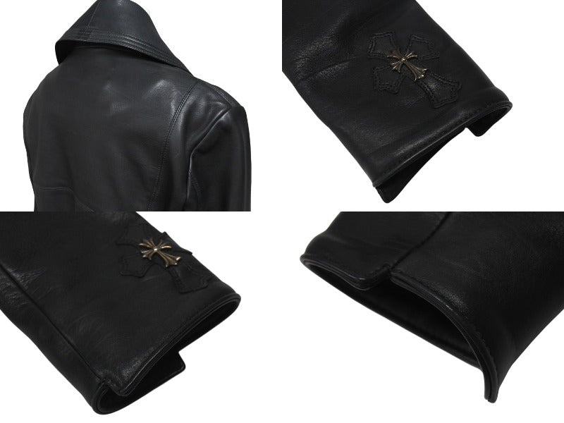 美品 CHROME HEARTS クロムハーツ レディース ラウンドカラー レザージャケット ダガー ブルゾン ブラック 黒 サイズ XS 中古 4b002073