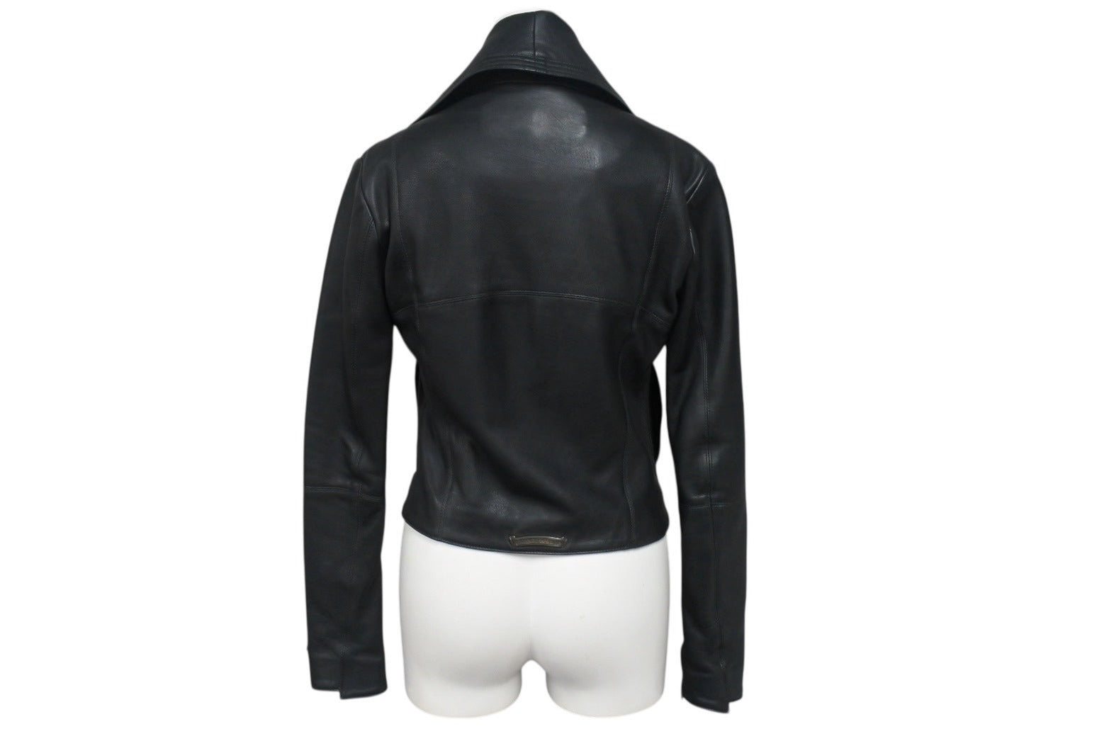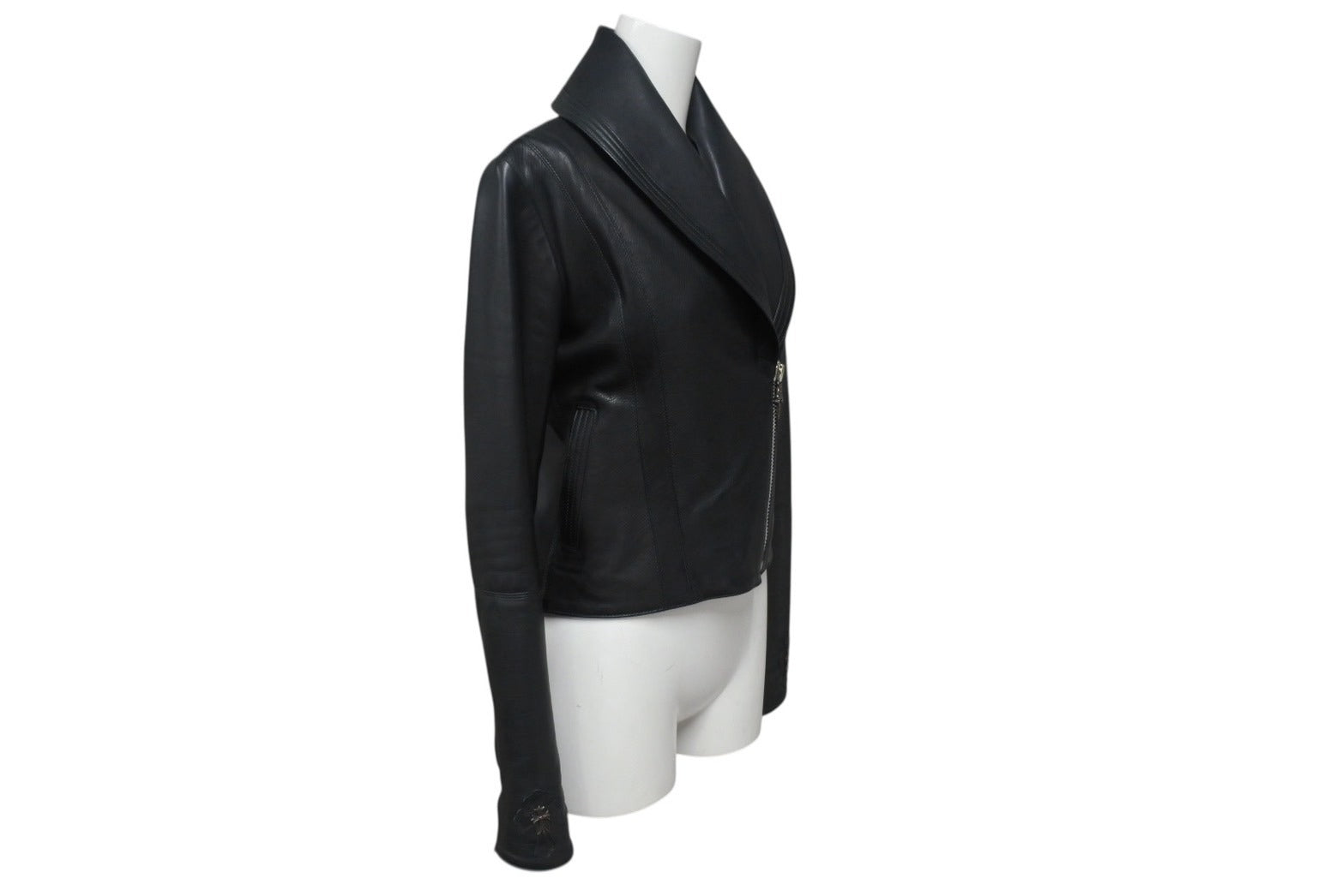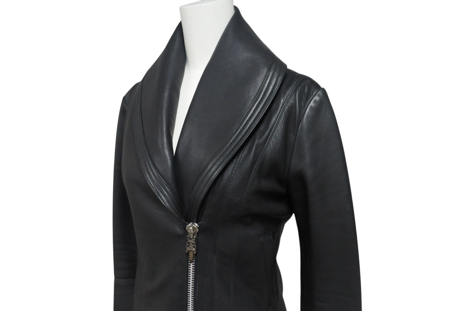 美品 CHROME HEARTS クロムハーツ レディース ラウンドカラー レザージャケット ダガー ブルゾン ブラック 黒 サイズ XS 中古 4b002073