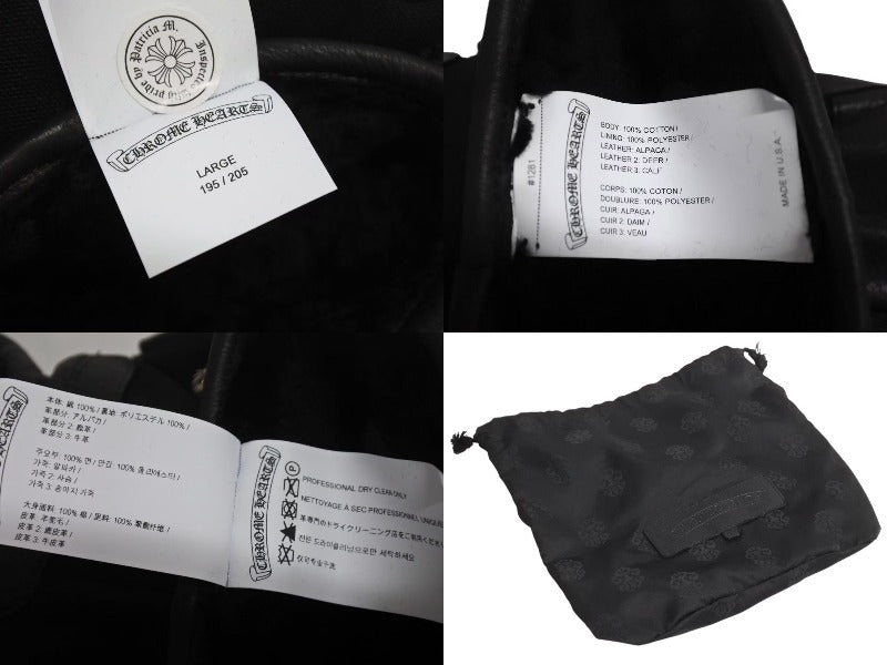 新品未使用 CHROME HEARTS クロムハーツ レザーグローブ サイズL CHプラスパッチ クロスボールボタン 6パッチ シルバー925 中古 4b002296