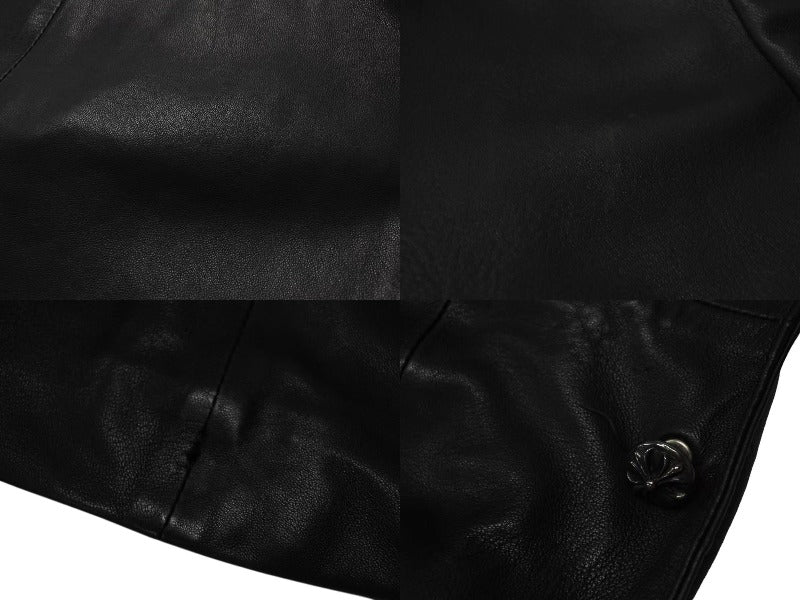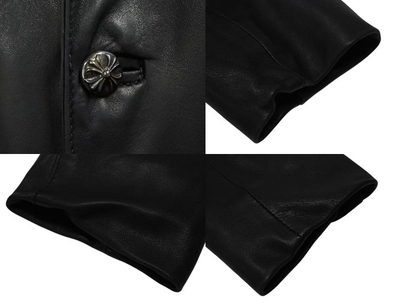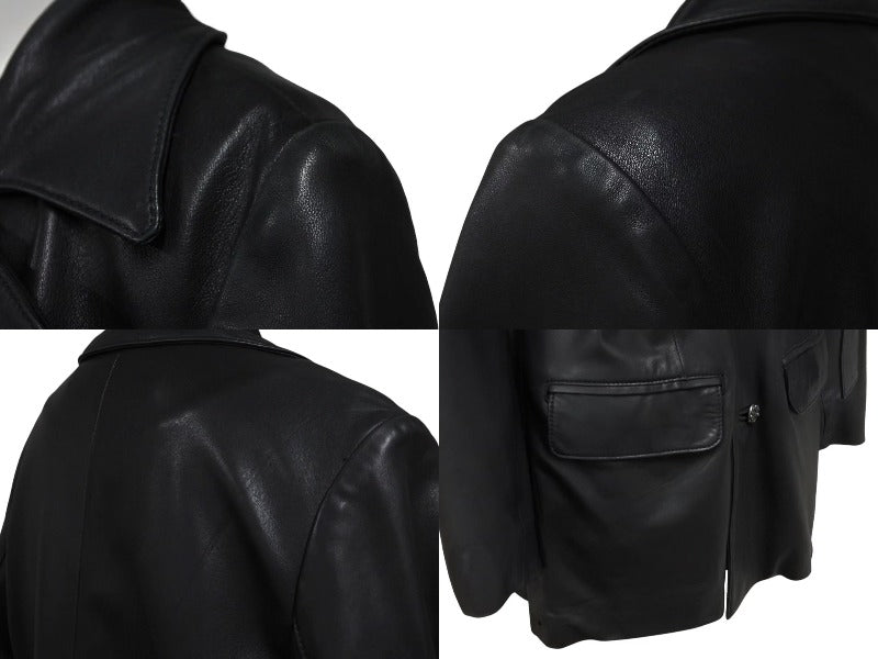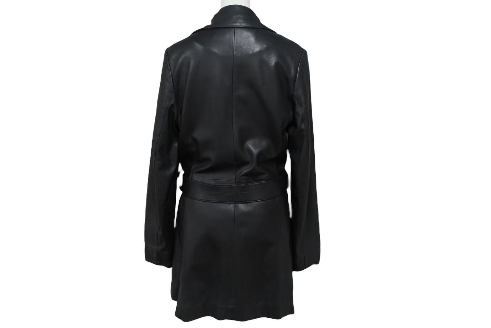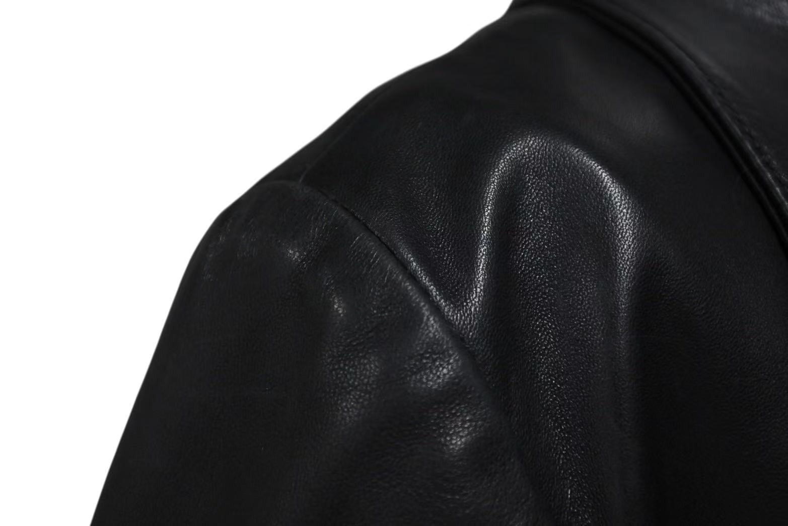 フロントボタンがクロスボールボタンになっており、無骨さと上品さを兼ね備えたレザーコートです。