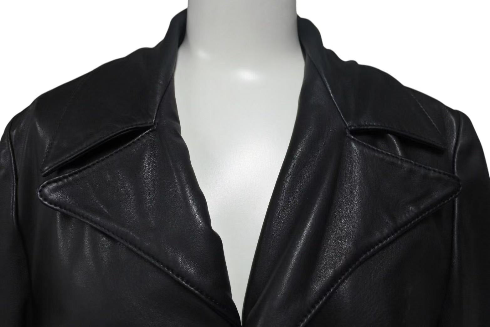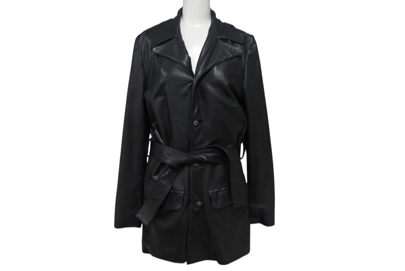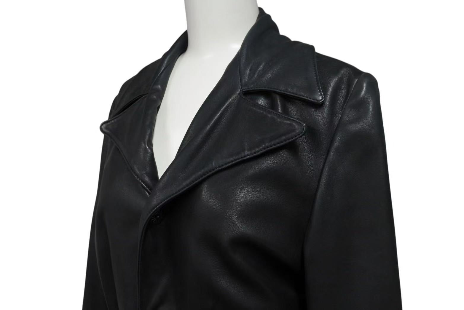 フロントボタンがクロスボールボタンになっており、無骨さと上品さを兼ね備えたレザーコートです。