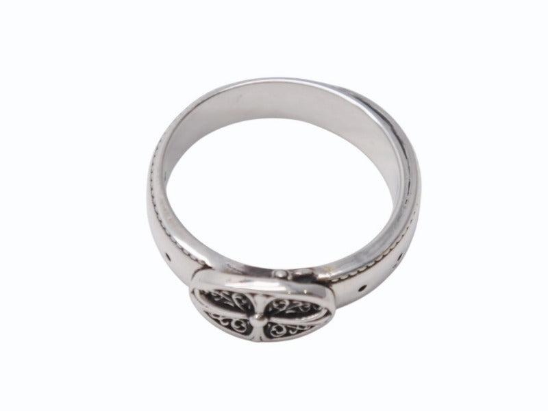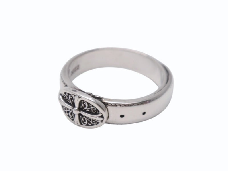 クラシックオーバルクロスバックルベルトのデザインを踏襲したシルバーリングです。