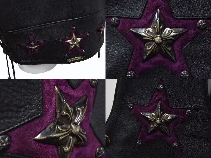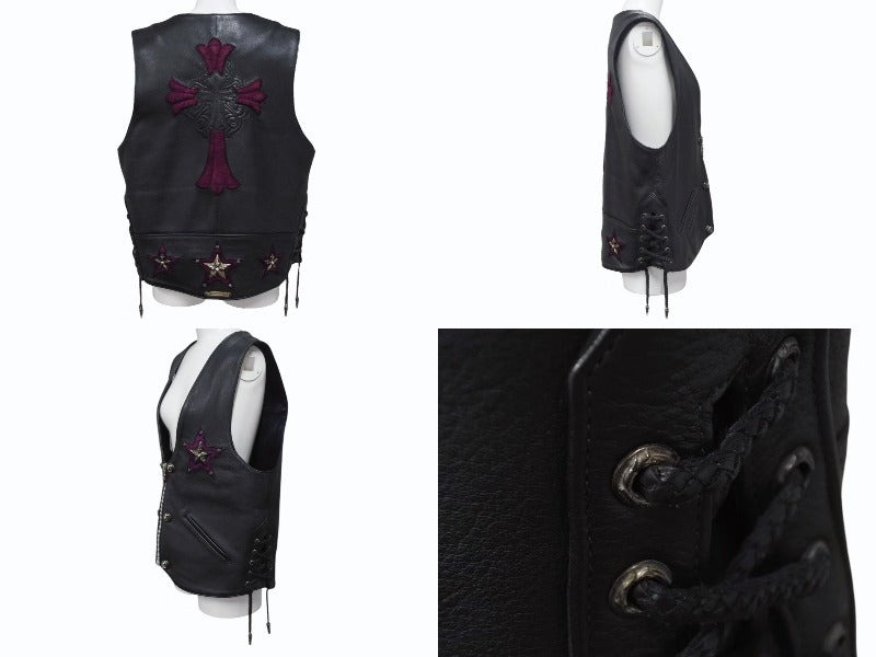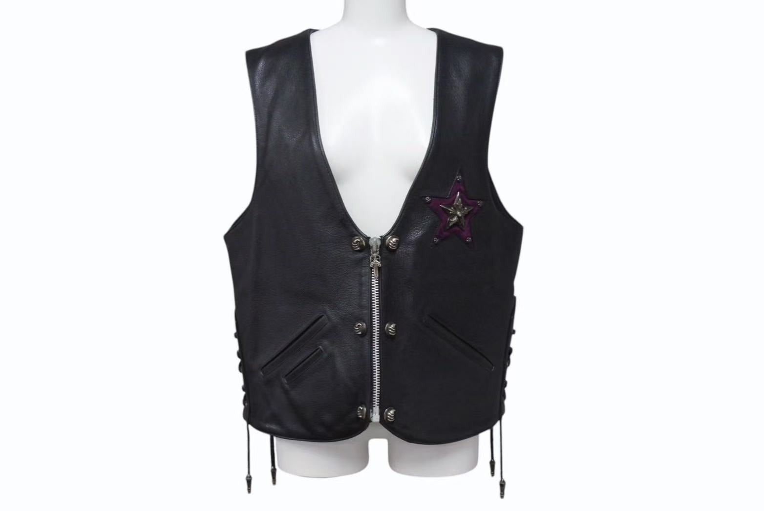 比較的大きめなサイズで、ブラックとパープルのコントラストが目をひくベストです。