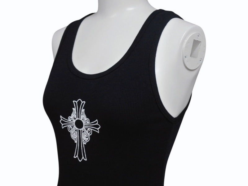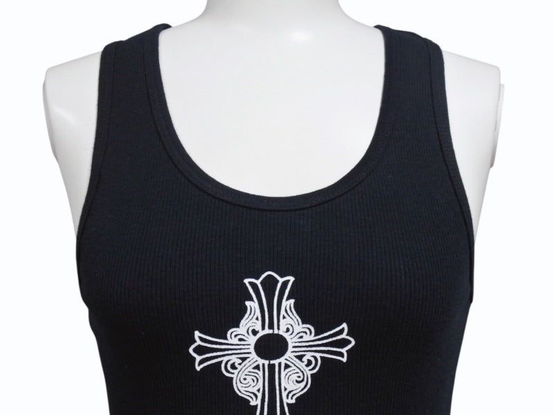 フロントに施された、オールドクロスプリントが目を惹くタンクトップです。
