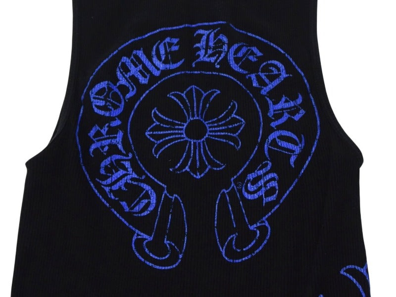 前後に施された、CHプラスとホースシューのプリントが目を惹くタンクトップです。