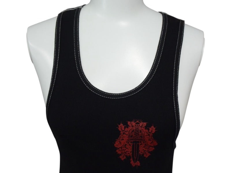 CHROME HEARTS クロムハーツ ダガー ホースシュー NYC限定 タンクトップ トップス コットン ブラック レッド サイズM 美品 中古 4b003344