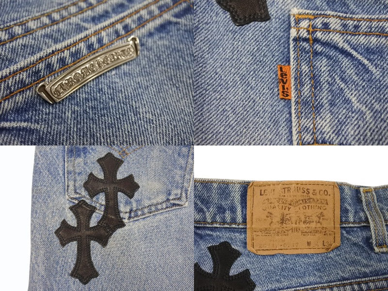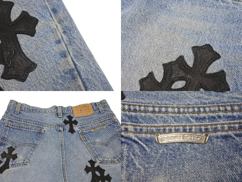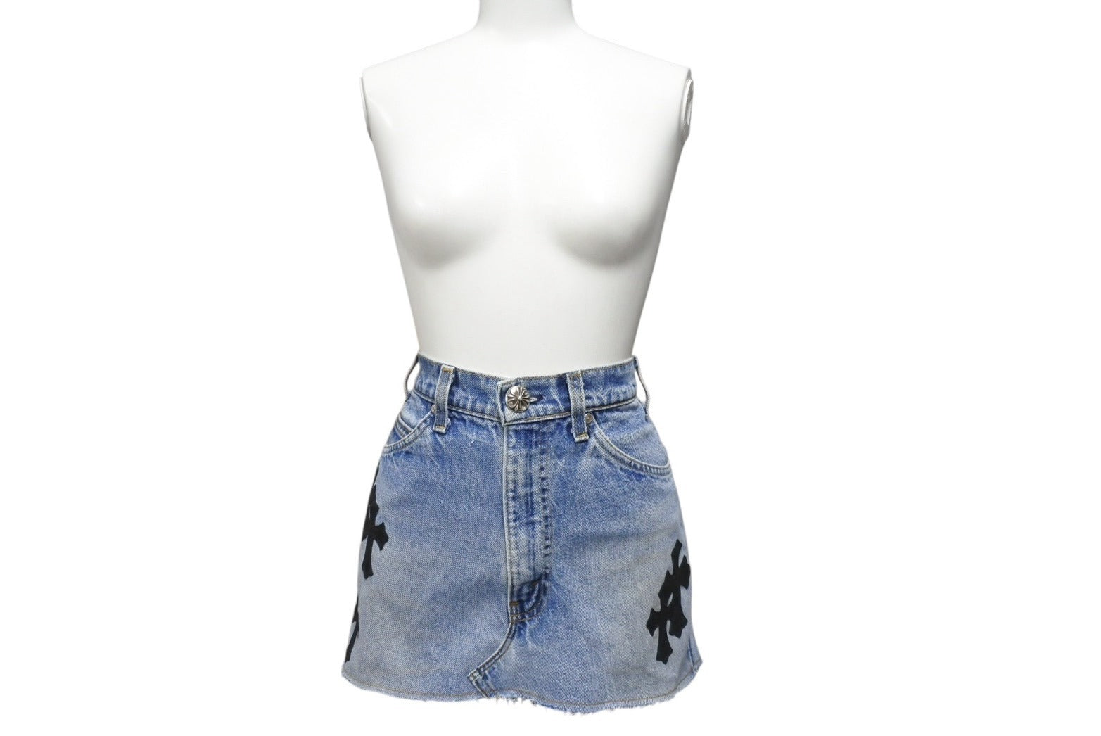 新品未使用 CHROME HEARTS × Levi's クロムハーツ リーバイス クロスパッチ デニム スカート インディゴブルー ブラック サイズ26 中古 4b003354