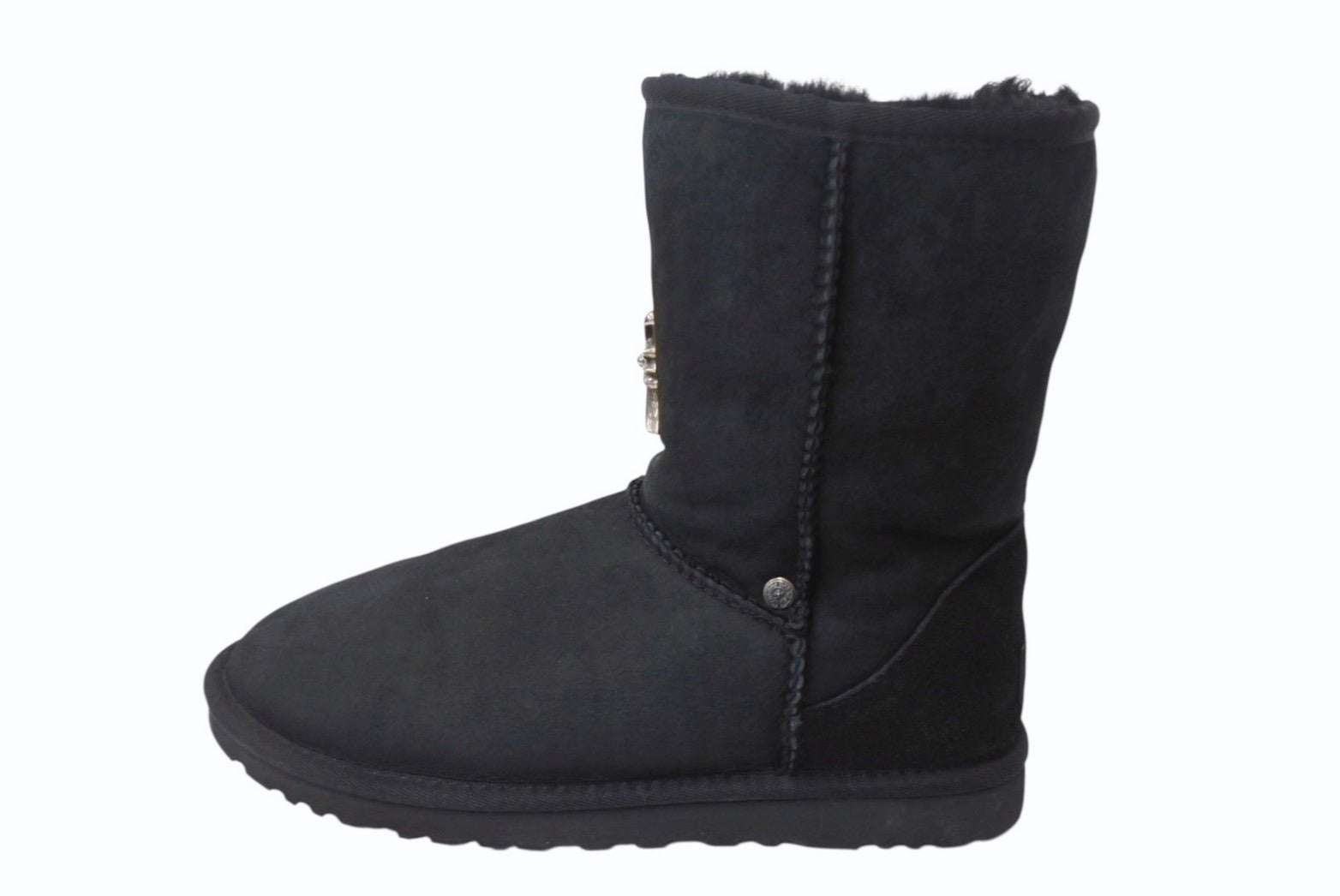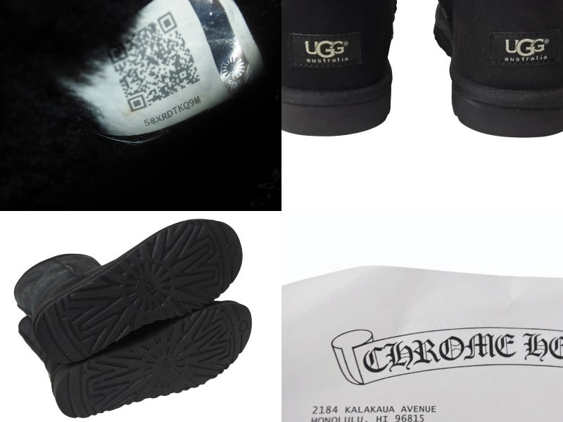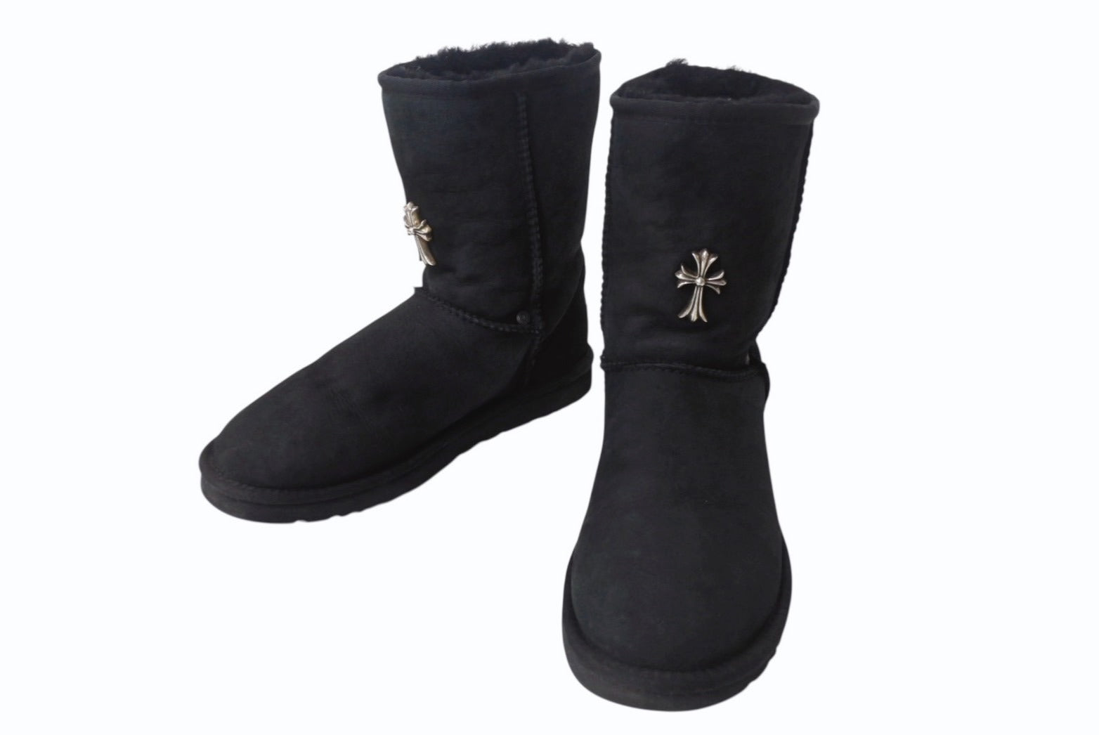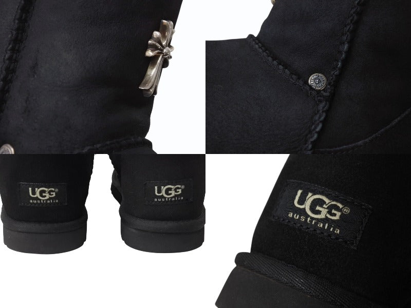 極美品 CHROME HEARTS クロムハーツ UGG アグ ムートンブーツ CHクロス シープスキン シルバー925 ブラック サイズ26cm 中古 4b003715