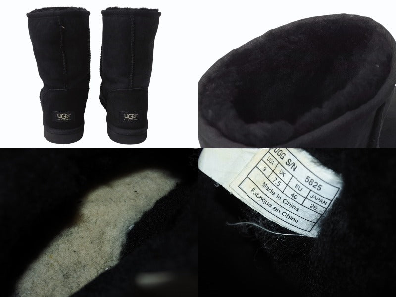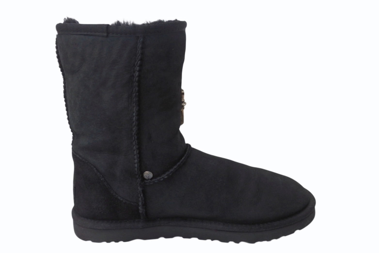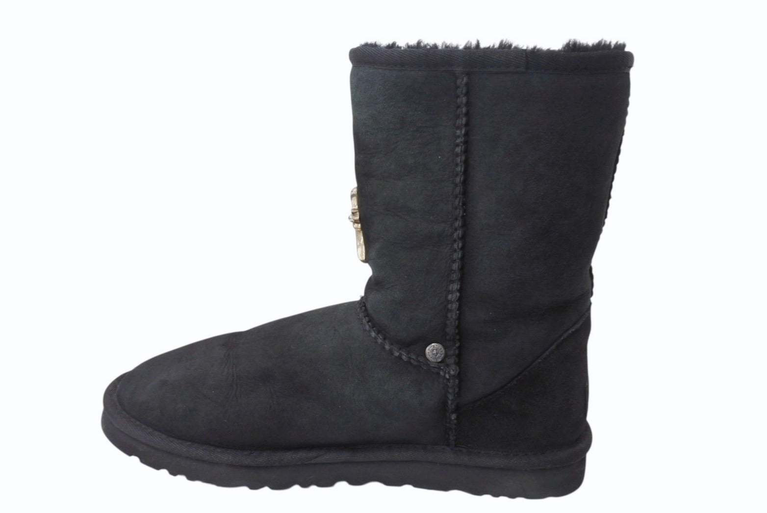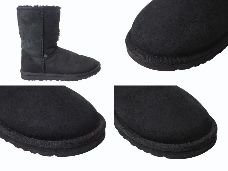 極美品 CHROME HEARTS クロムハーツ UGG アグ ムートンブーツ CHクロス シープスキン シルバー925 ブラック サイズ26cm 中古 4b003715