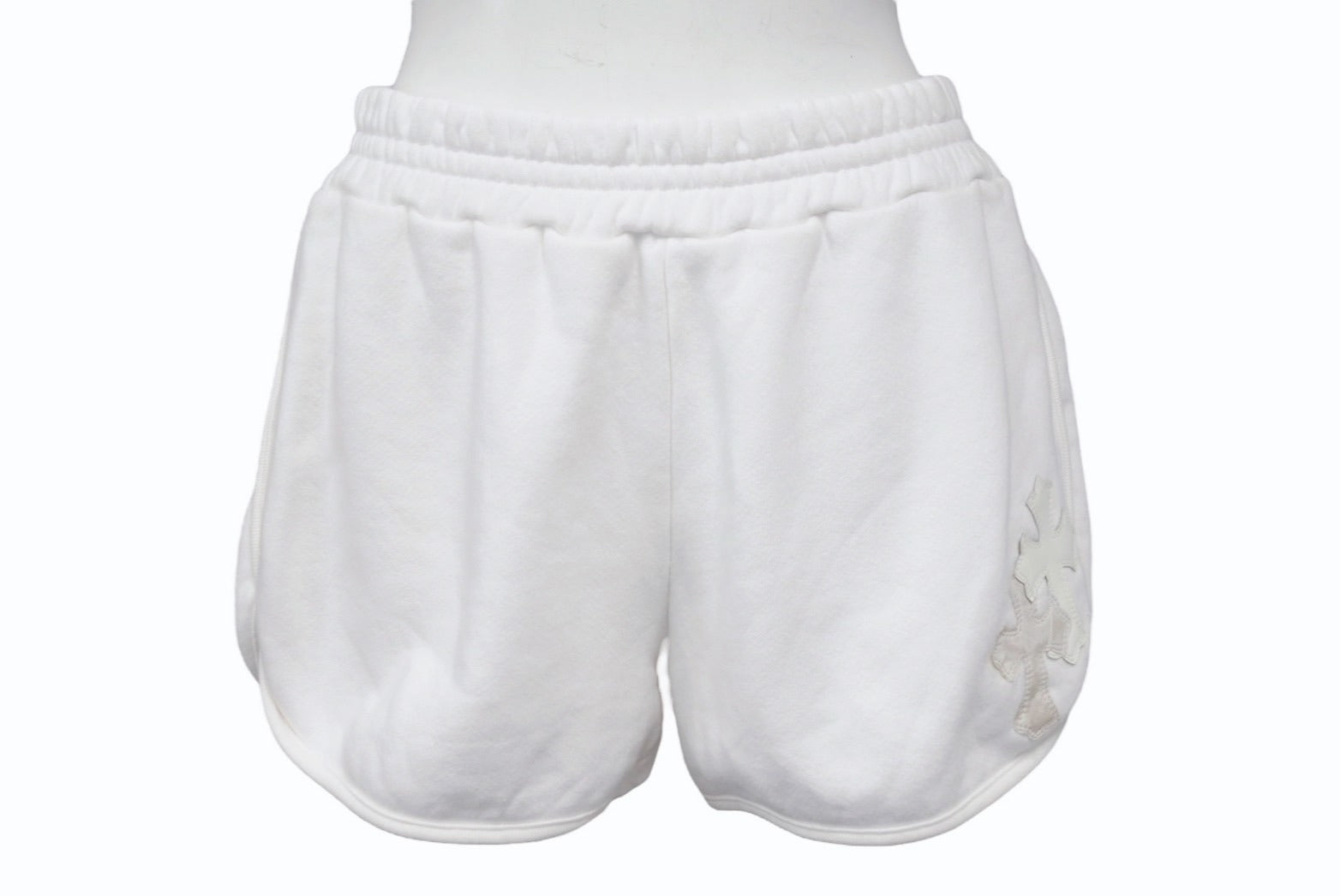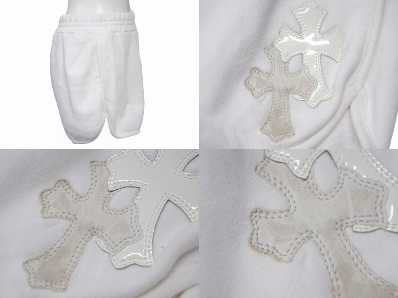 CHROME HEARTS クロムハーツ パテントレザークロスパッチ Y NOT スウェットショーツ RN#97729 コットン ホワイト サイズXS 美品 中古 4b003823