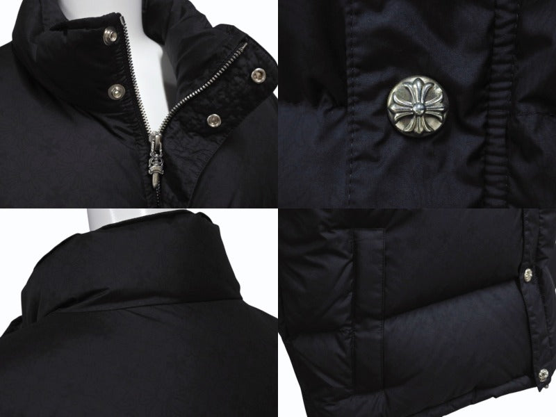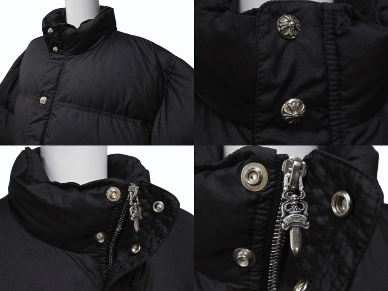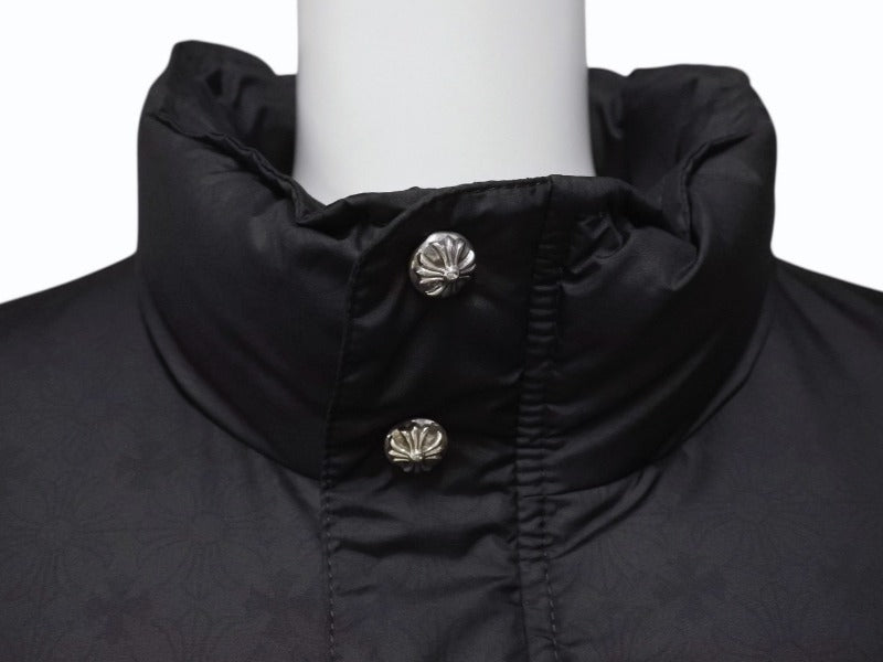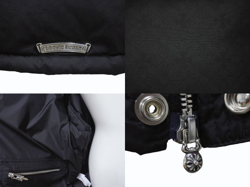 新品未使用 CHROME HEARTS クロムハーツ STIFF V2 FBRC ダウンジャケット サイズL CHプラス シルバー925 ブラック 総柄 中古 4b004050