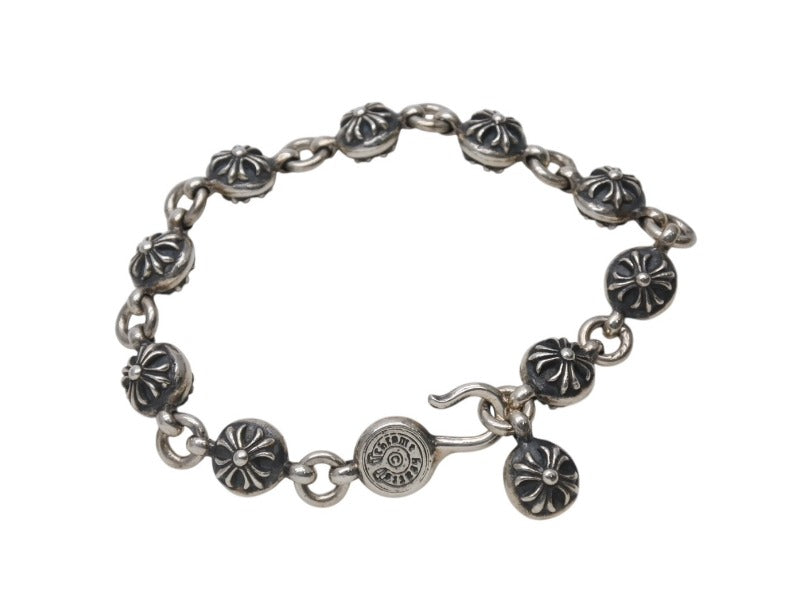 極美品 CHROME HEARTS クロムハーツ クロスボール ブレスレット CHクロス 10コマ 重量約67,5g シルバー925 中古 4b006069