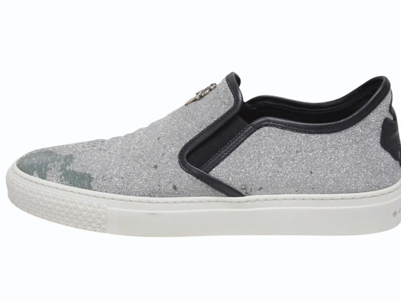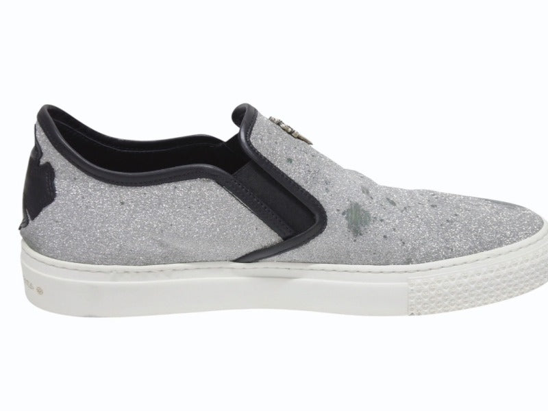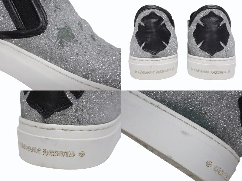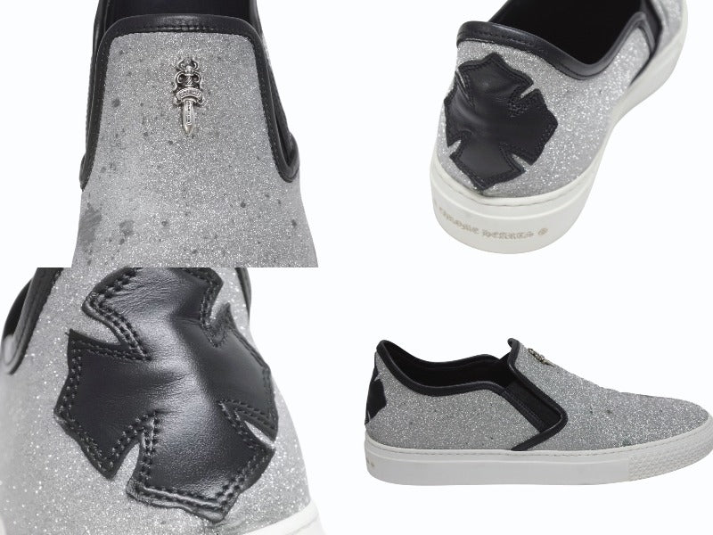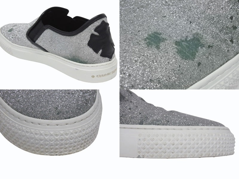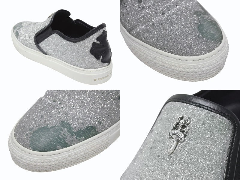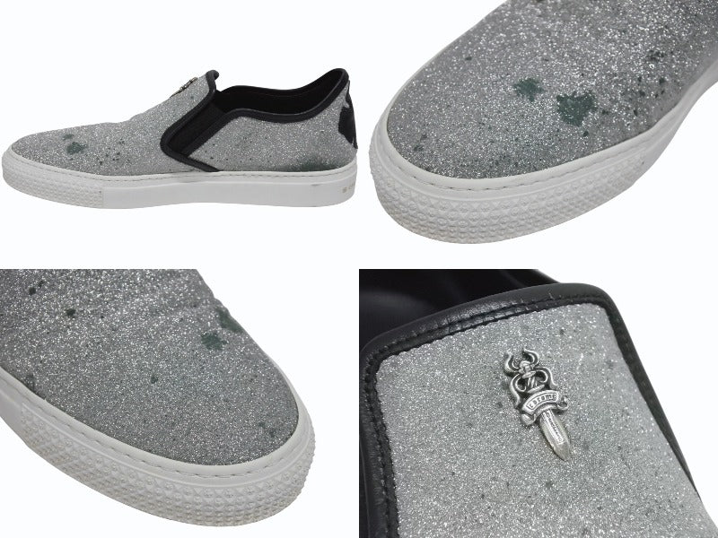 CHROME HEARTS クロムハーツ CH SLIP ON スリッポン スニーカー サイズ43 グリッター シルバー CHプラスパッチ ダガー装飾 良品 中古 4b006235