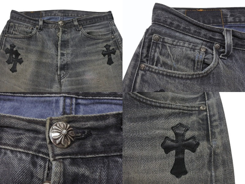 CHROME HEARTS クロムハーツ セメタリー クロスパッチ デニム パンツ リーバイス LEVI`S 501 サイズ31 ブラック 美品 中古 4b006561