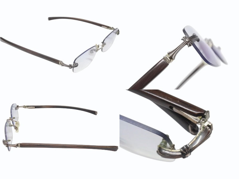 CHROME HEARTS クロムハーツ LIVING PROOF III EBONY WOOD メガネ ダークブラウン 度入り ウッド シルバー925 シルバー金具 良品 中古 4b006915