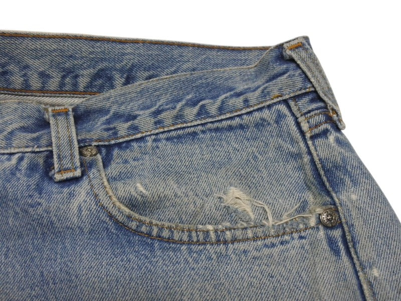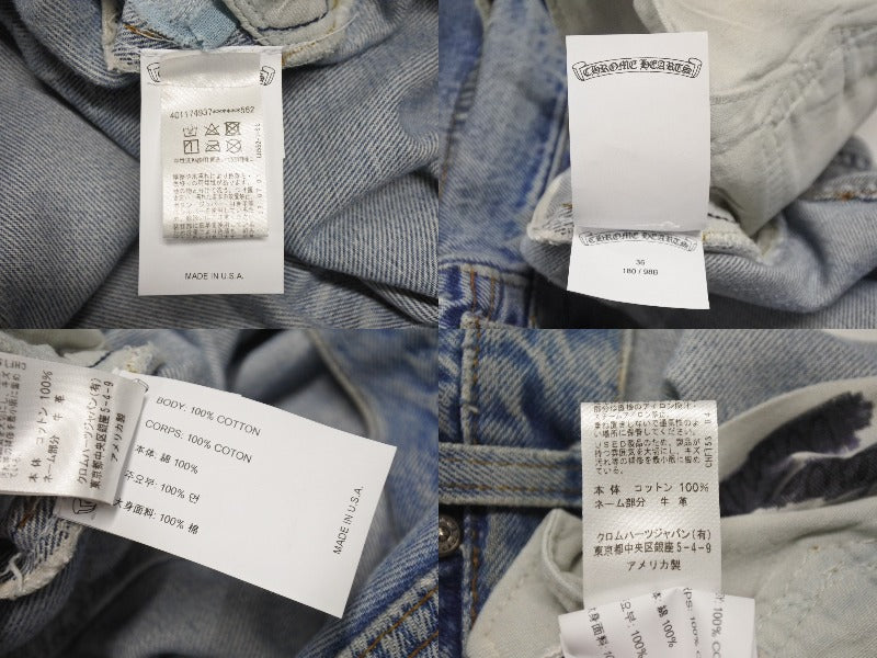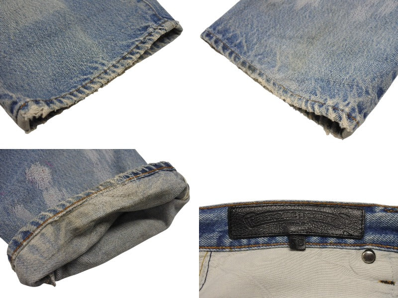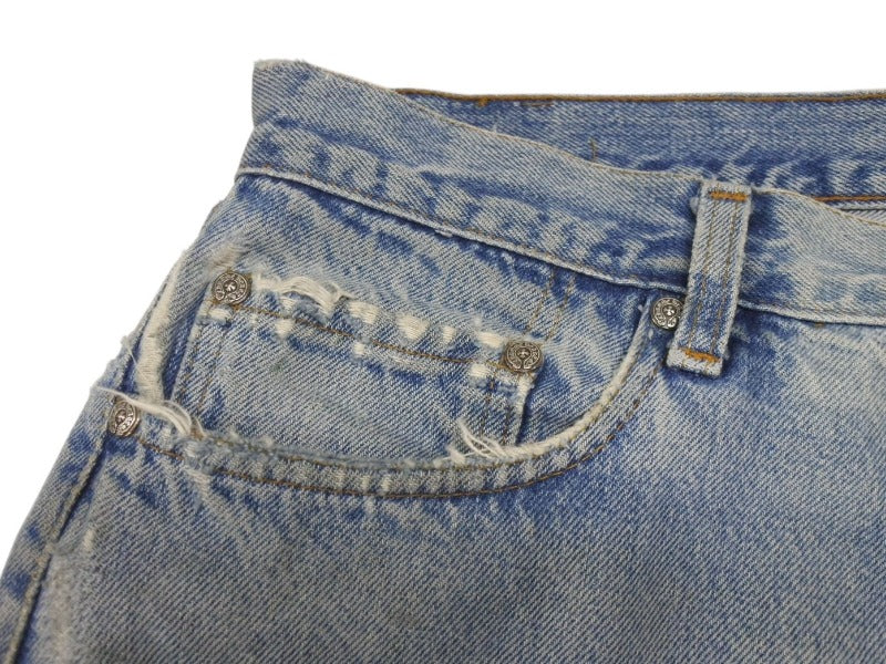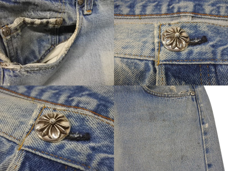 ホースシューリベットやクロスボールボタン、スクロールラベルロゴ金具などクロムハーツの魅力溢れるアイテムです。ヴィンテージ特有のフェード感やダメージなどもお楽しみいただけます。