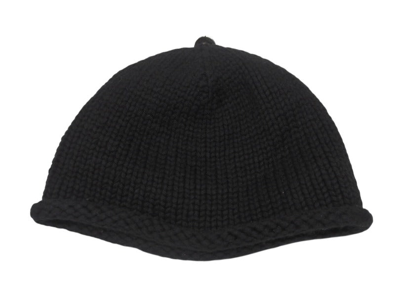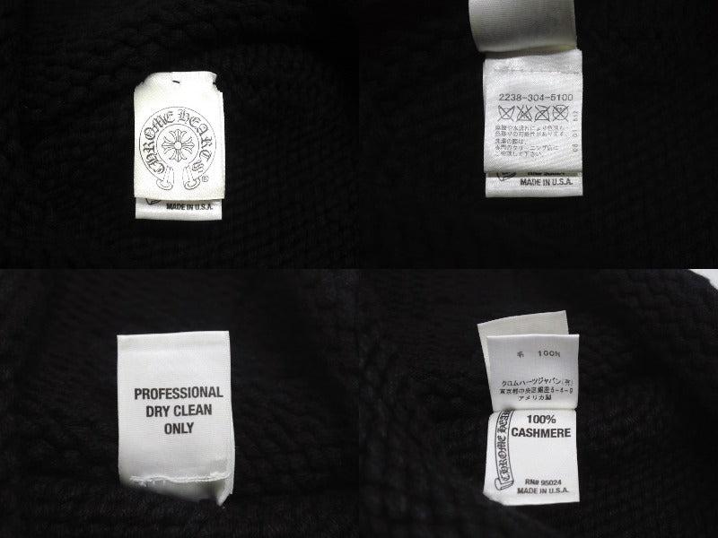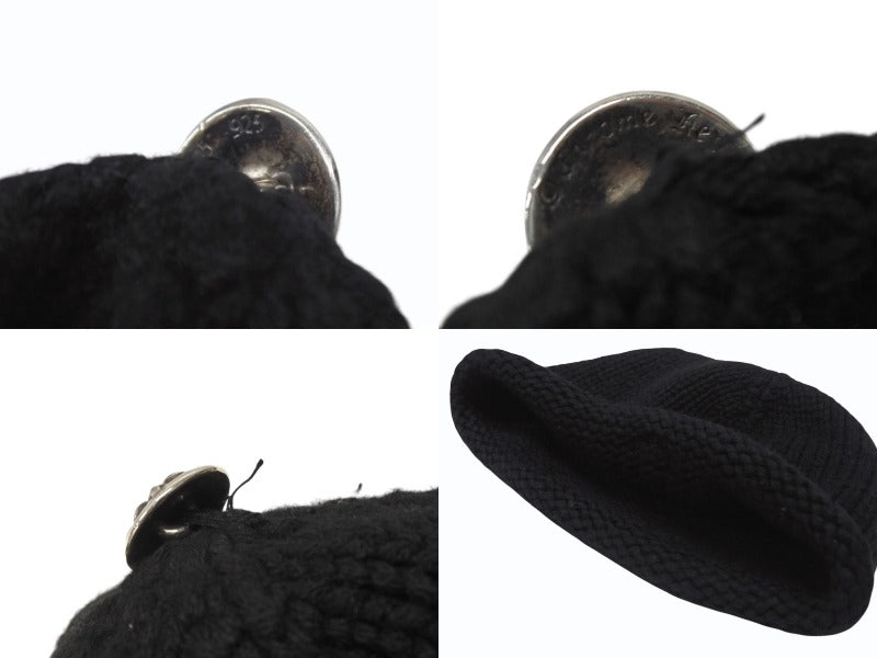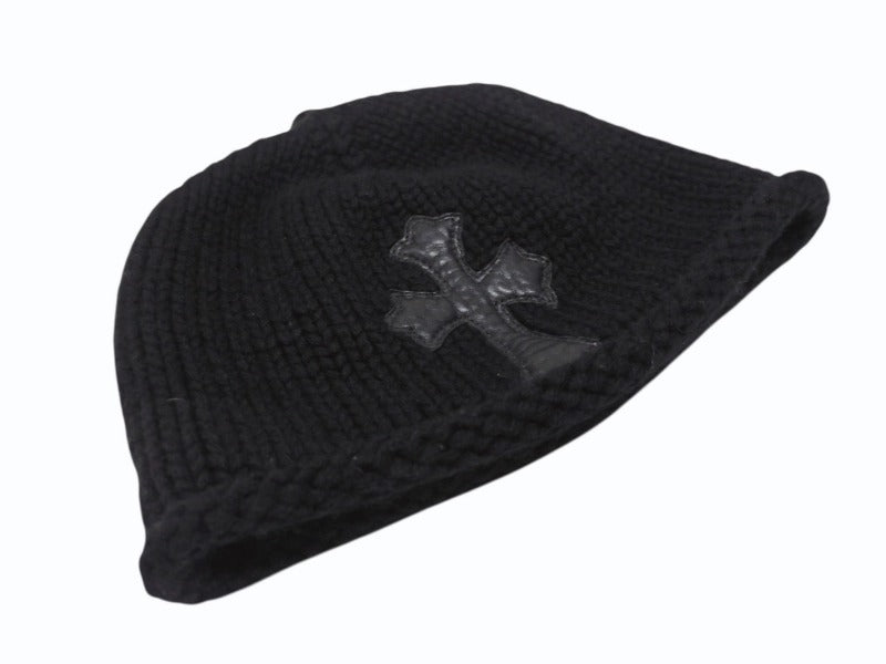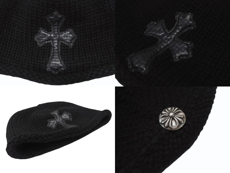 極美品 CHROME HEARTS クロムハーツ クロスパッチ ニットキャップ ビーニー カシミヤ レザー シルバー925 ブラック 中古 4b007354