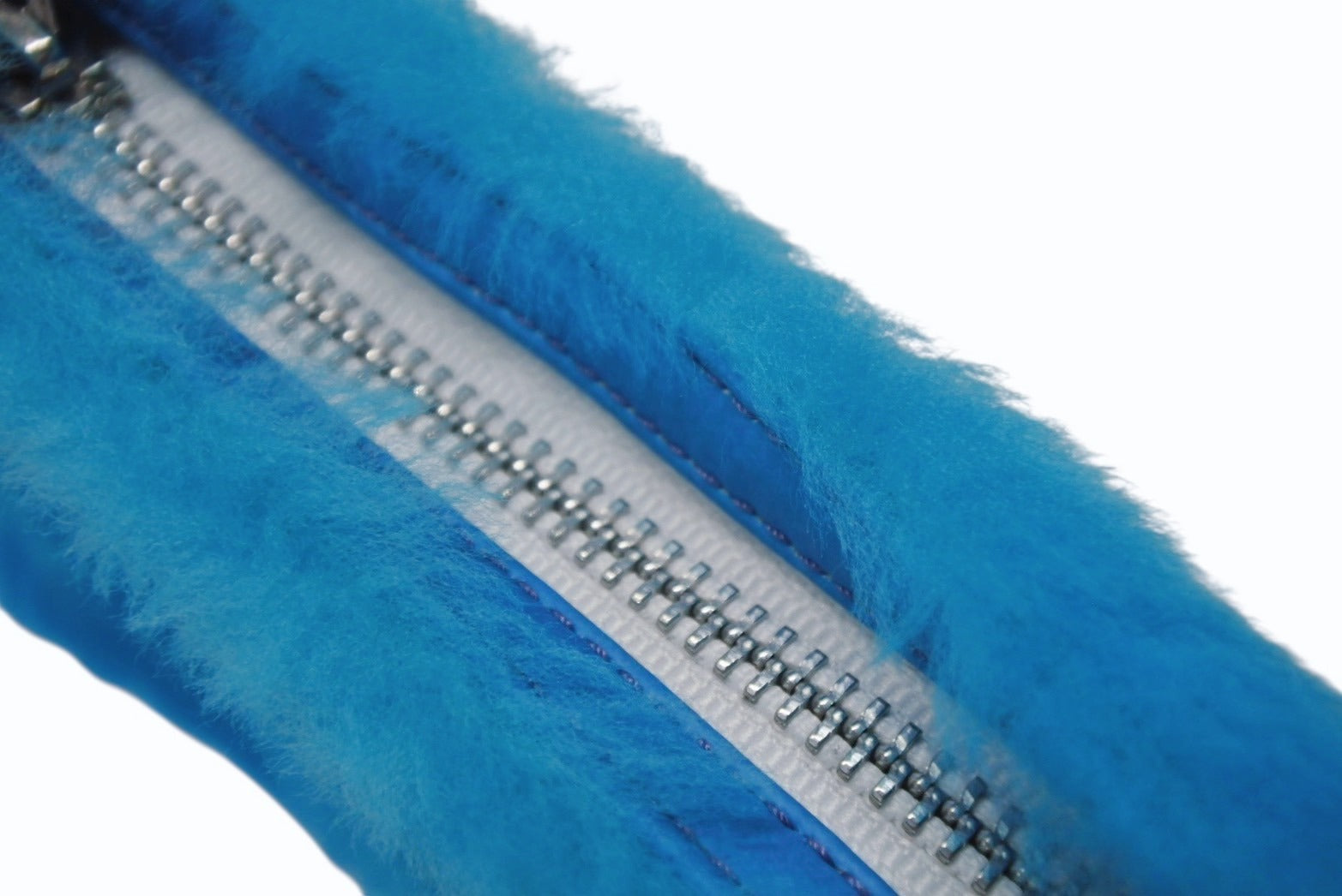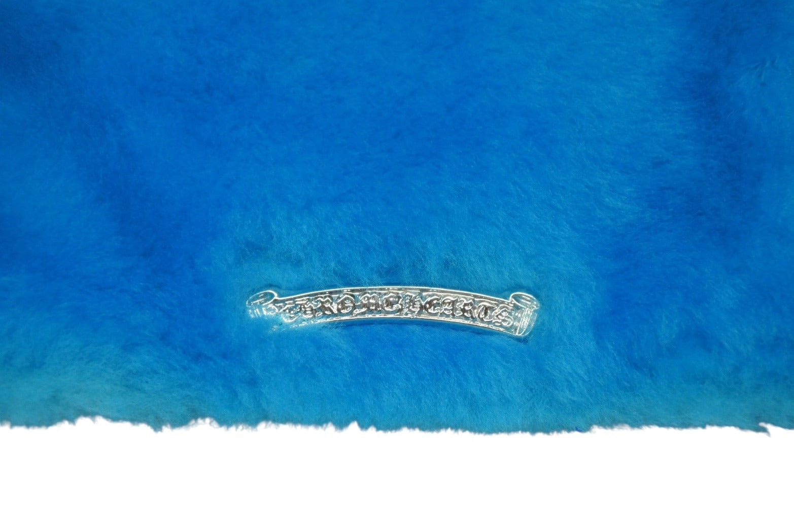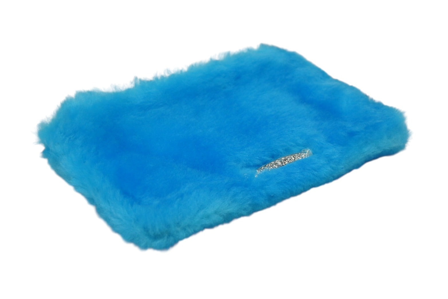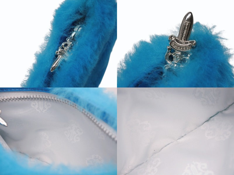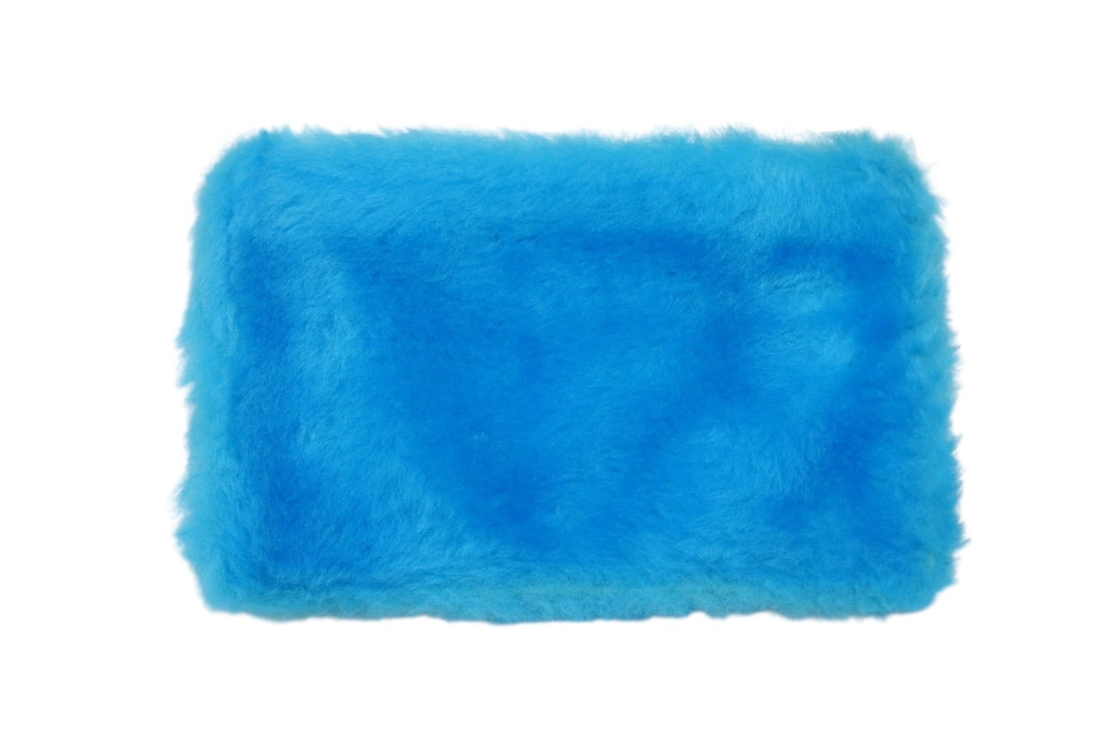 鮮やかなブルーカラーが目を惹くファーポーチです。