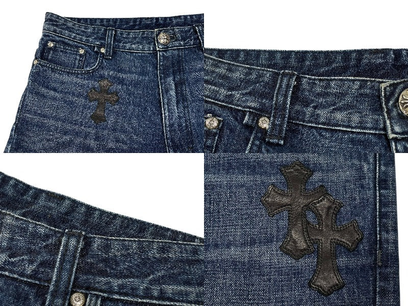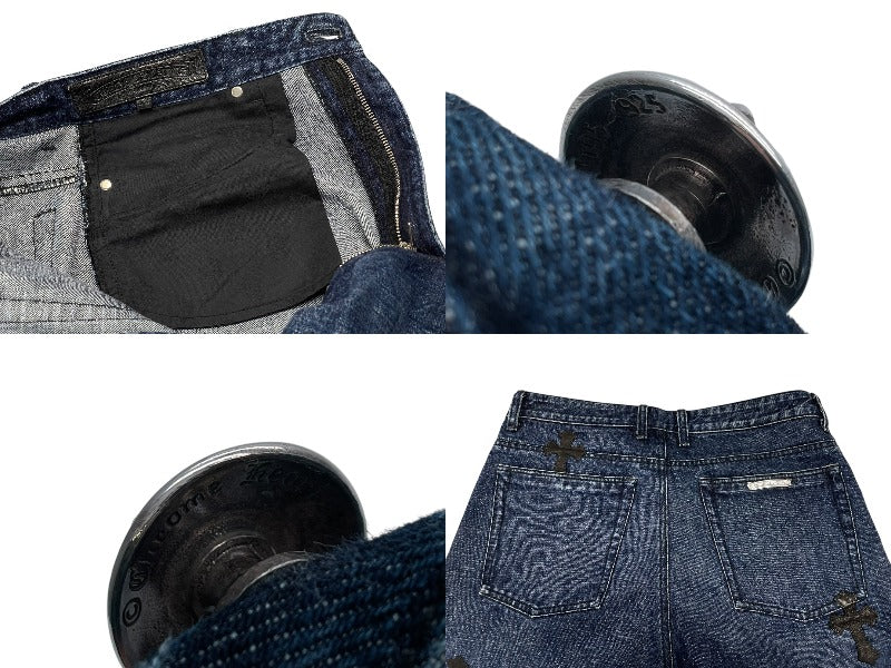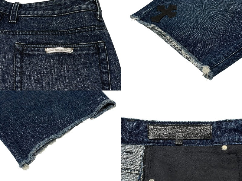 極美品 CHROME HEARTS クロムハーツ CHクロスパッチ デニムショーツ ショートパンツ サイズ30 7パッチ インディゴブルー 中古 4b008087