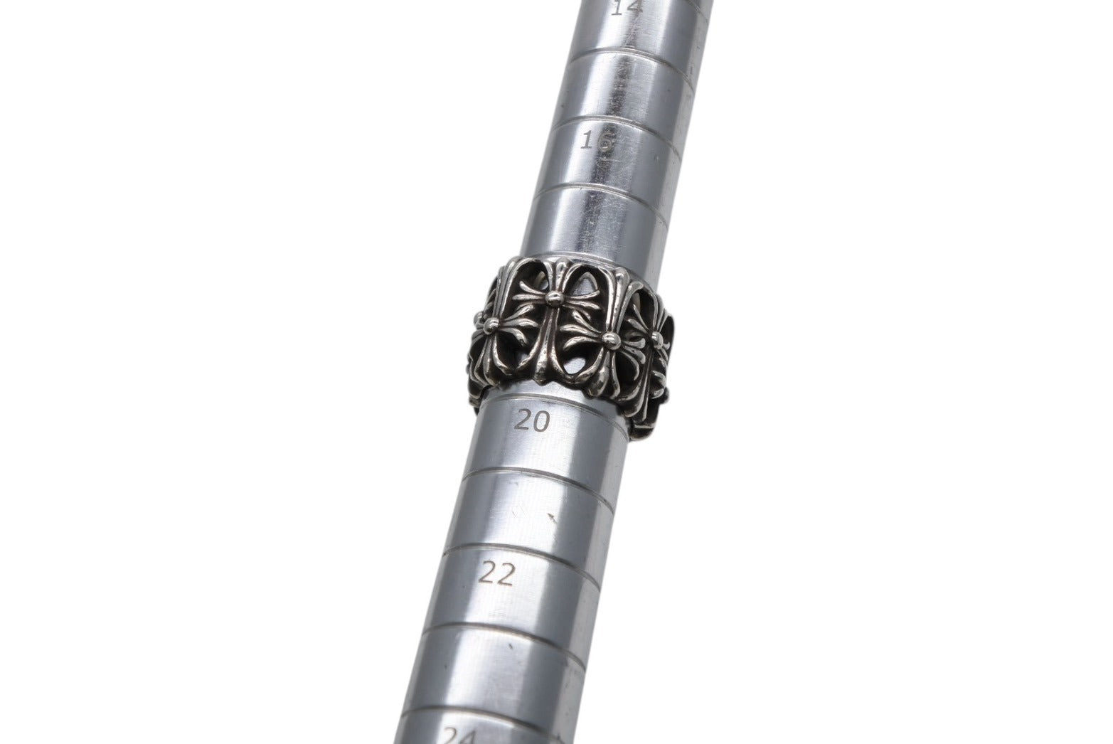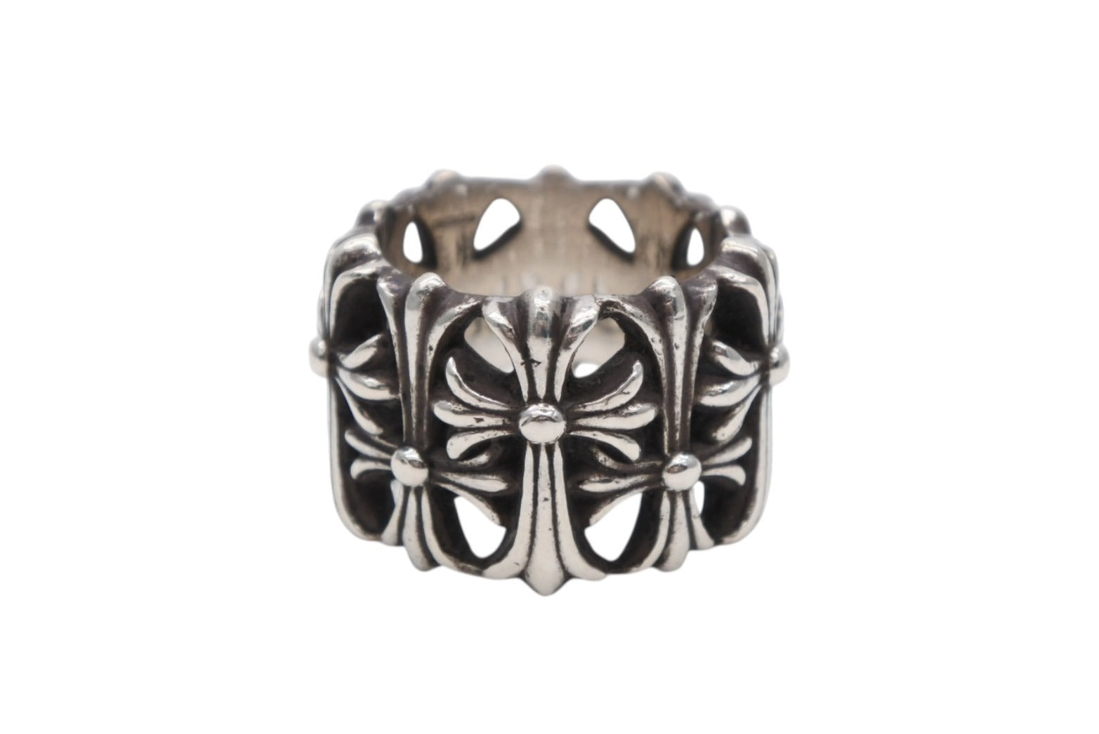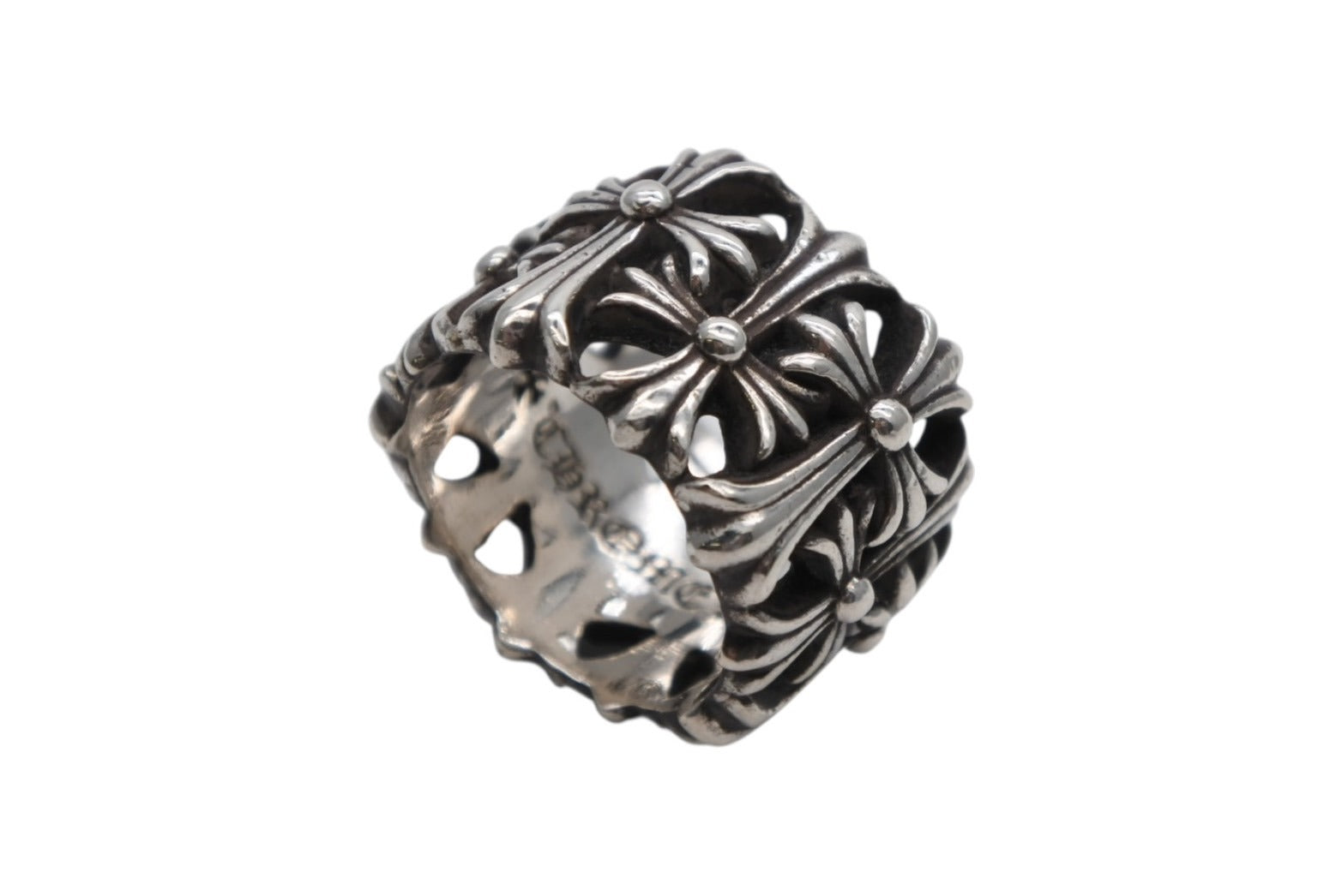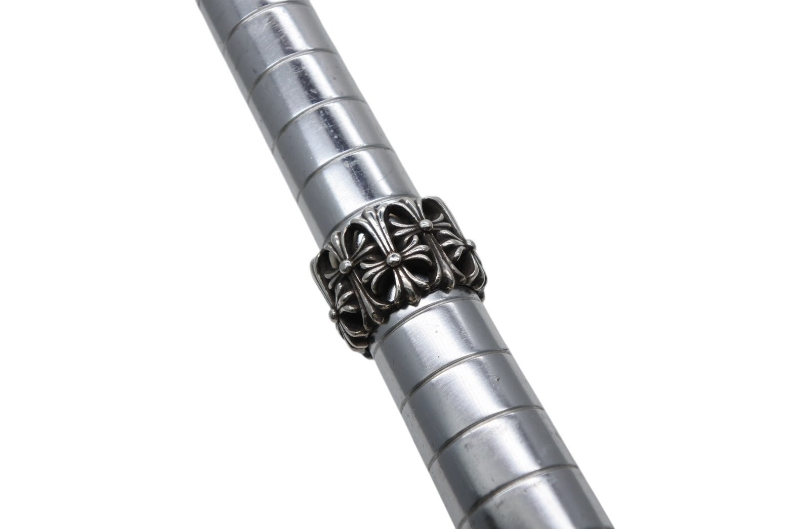クロムハーツの中の大人気モチーフ、CHクロスのモチーフが上下交互に連なった贅沢かつ存在感の強いフォルムが印象的な、「セメタリーリング」です。