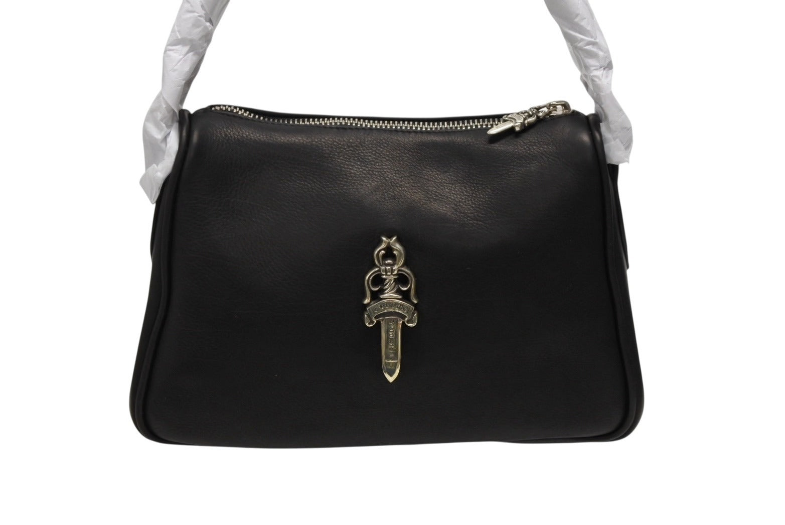 新品未使用 CHROME HEARTS クロムハーツ チキンナゲットスモール ショルダーバッグ ダガー レザー シルバー925 ブラック 中古 4b008684