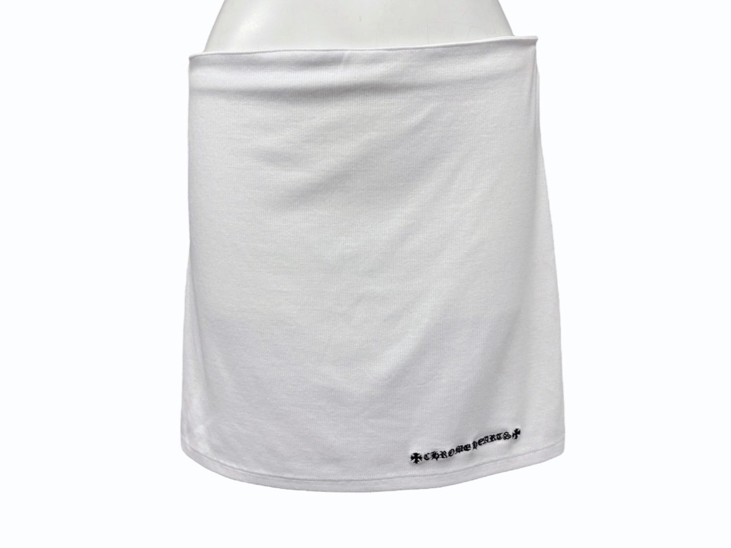 新品未使用 CHROME HEARTS クロムハーツ GRP Y NOT SKIRT W BAD SEED MINI Yノット ミニスカート サイズM ホワイト ダガー刺繍 中古 4b008715