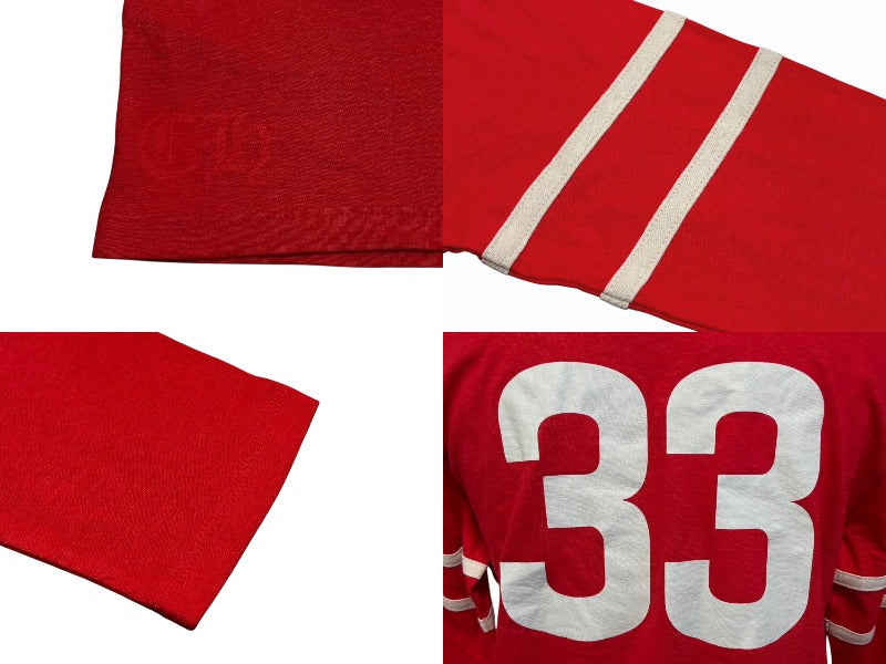 胸元のホースシュープリント、背面のナンバリングプリントが可愛らしいフットボールTシャツです。