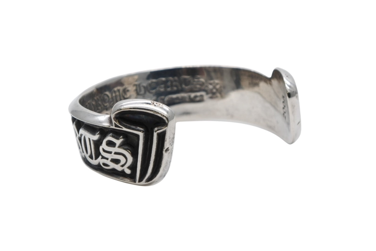 クロムハーツのブランドアイコンでもあるスクロールラベルのバングルです。