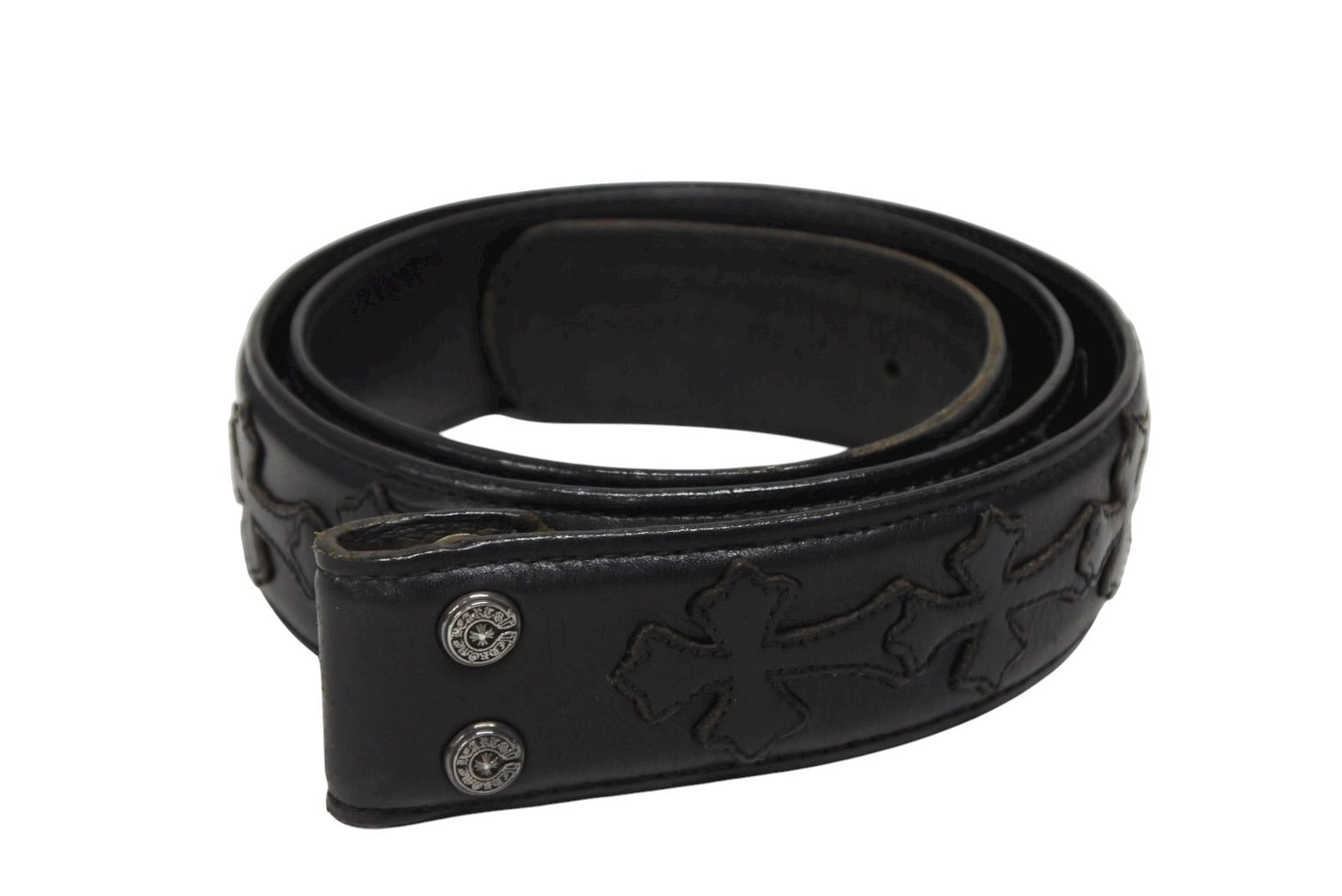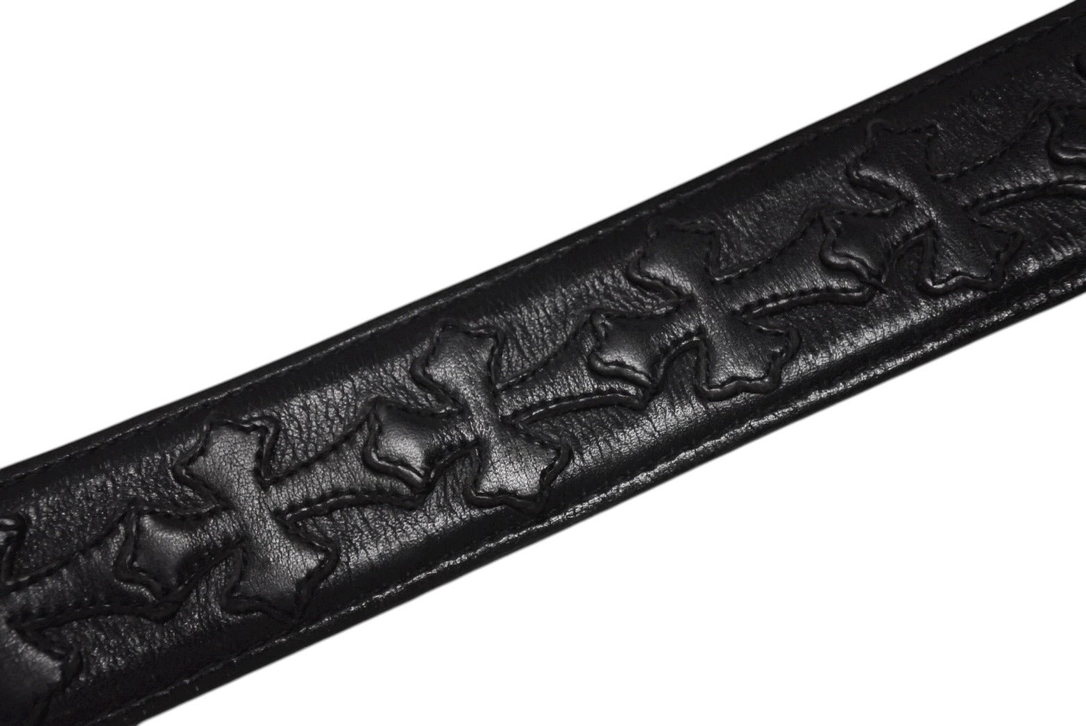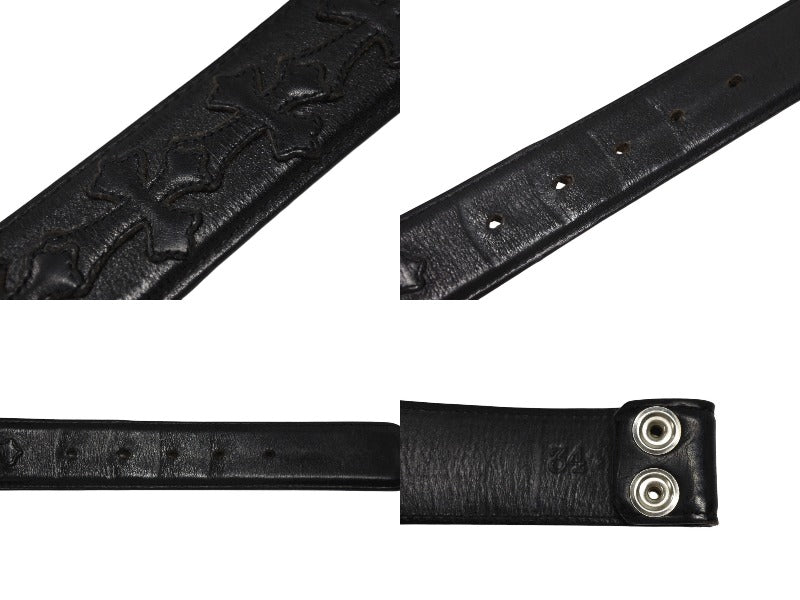 CHROME HEARTS クロムハーツ ベルト ストラップ サイズ34 セメタリー クロスパッチ シルバー925 レザー 美品 中古 4b008906