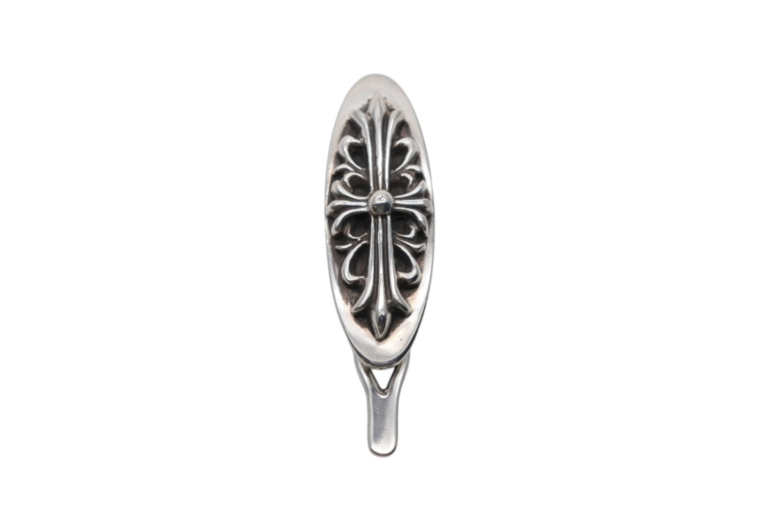 フローラルとクロスのモチーフが融合したフローラルクロスモチーフの髪留めです。