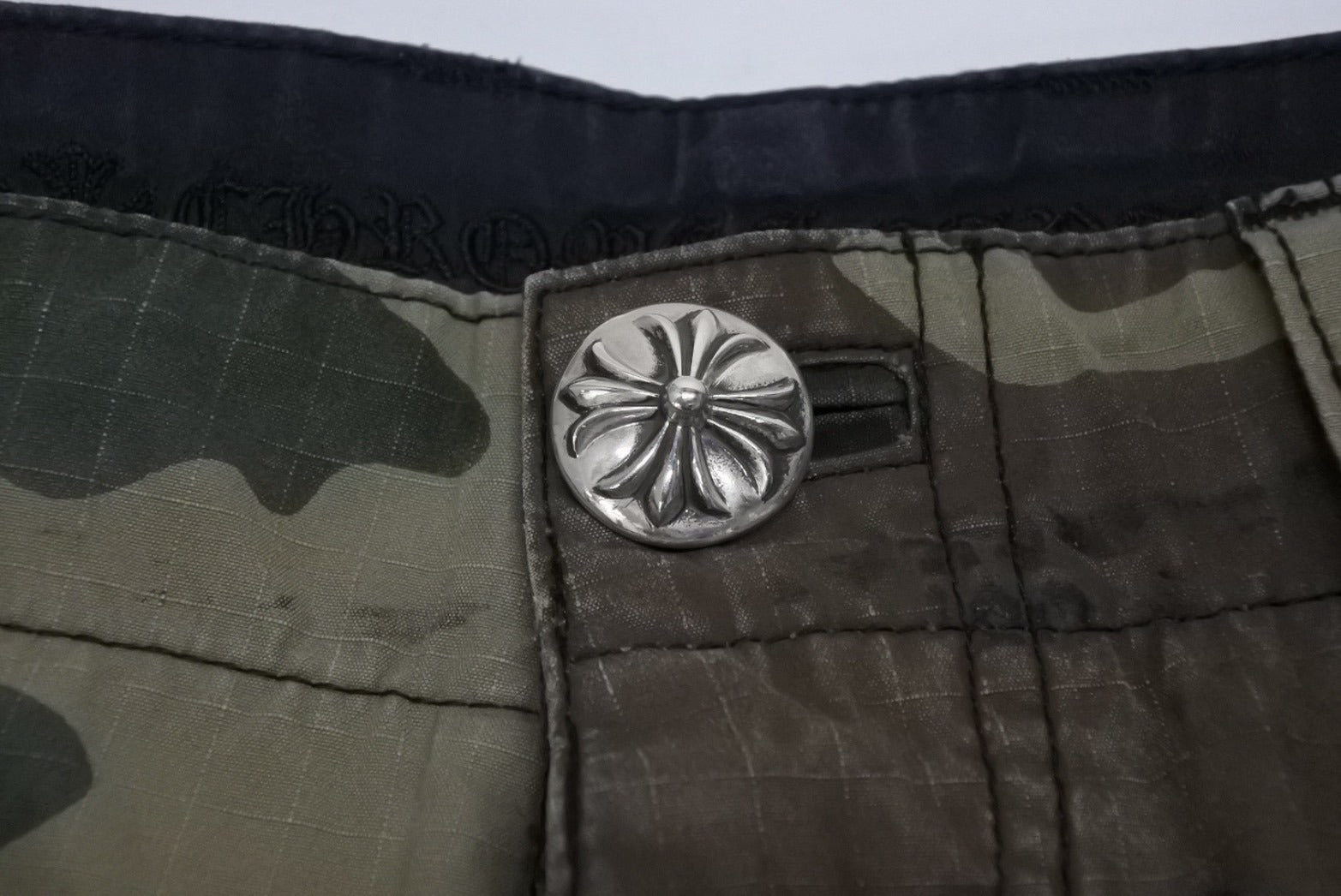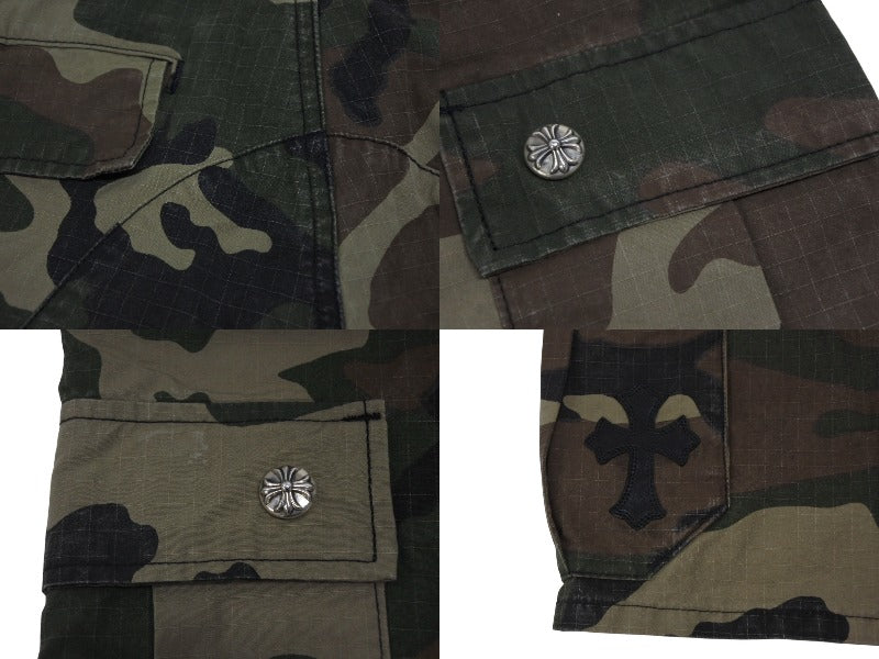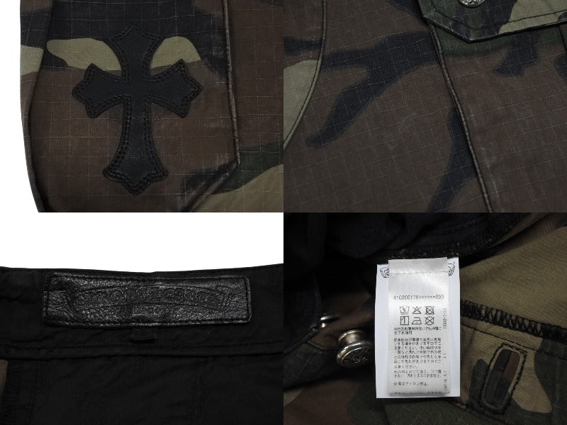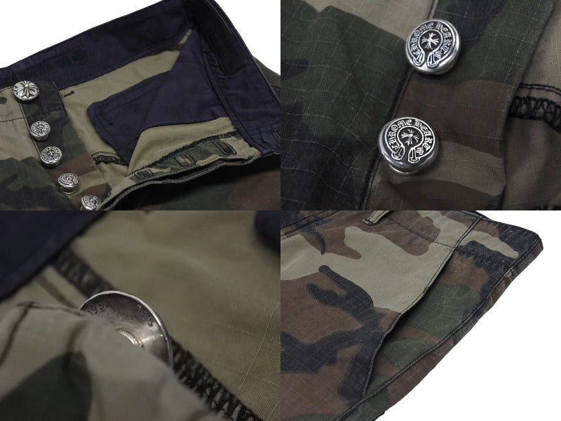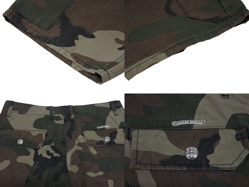 極美品 CHROME HEARTS クロムハーツ Devil Dog Shorts デビルドッグ カーゴショーツ サイズ31 CHクロスパッチ カモフラ柄 中古 4b009472