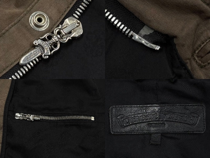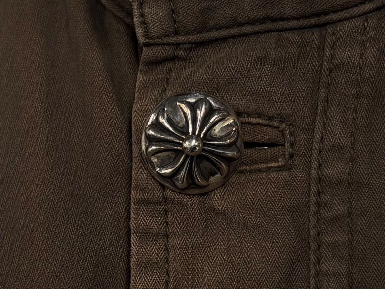 M-65をベースに構築されたコチラのジャケットは、2色展開ですがこちらはよりミリタリー感のあるカーキになります。クロスボールボタンやダガージップなどクロムハーツの魅力あふれるアイテムです。