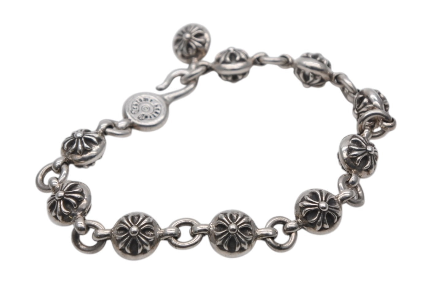 CHROME HEARTS クロムハーツ スモールCHクロス クロスボール ブレスレット 重量65.4g シルバー 美品 中古 4b009916