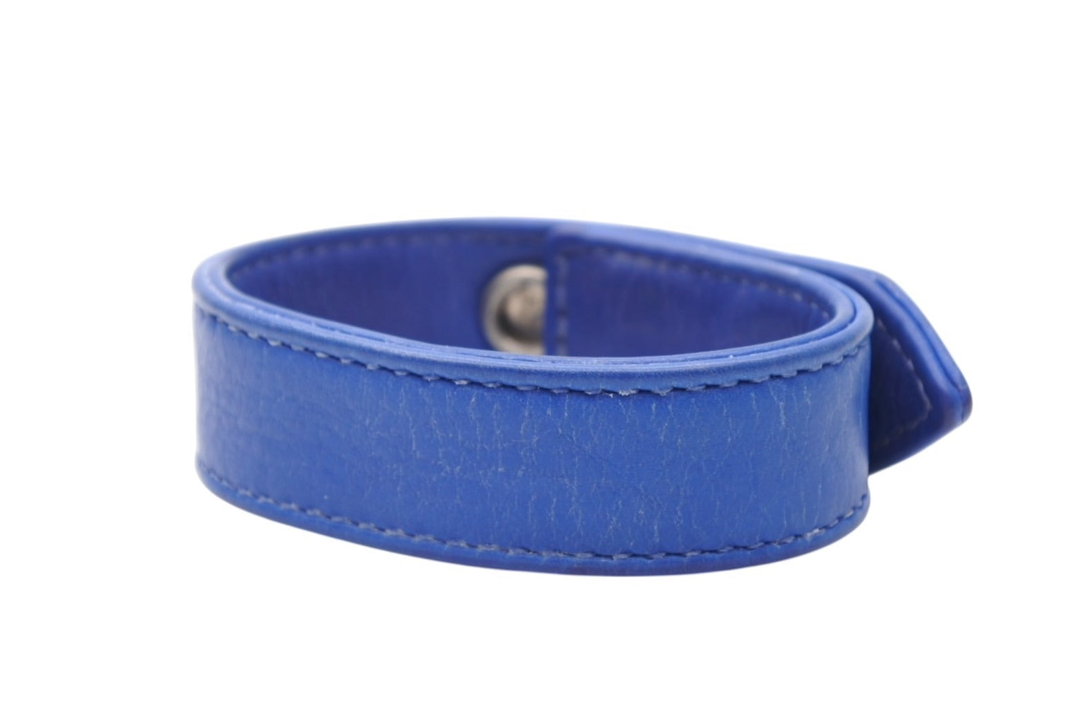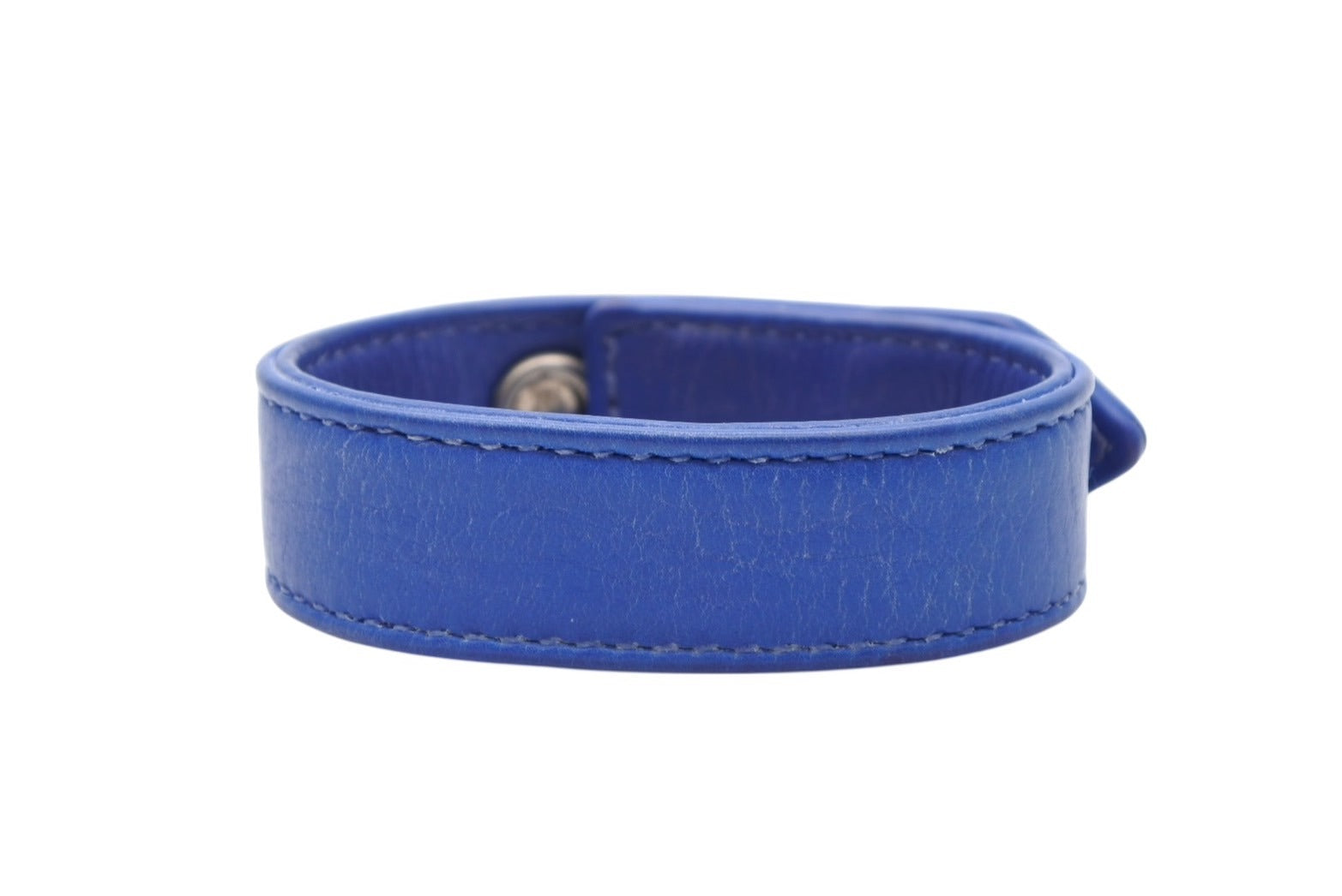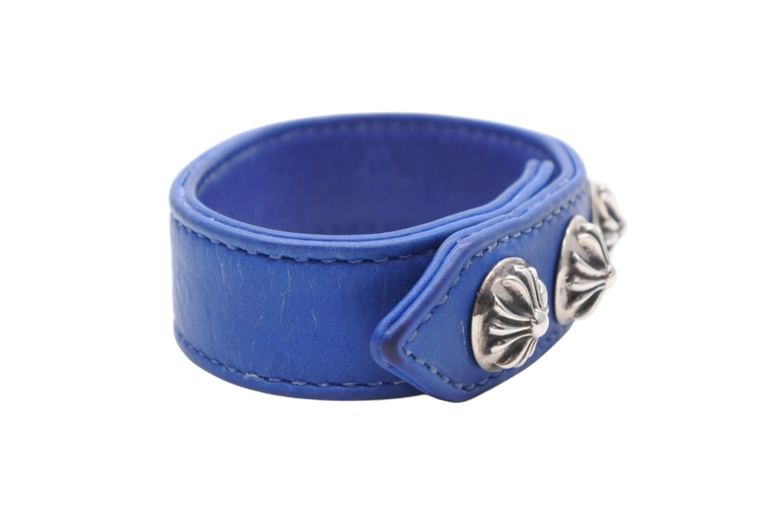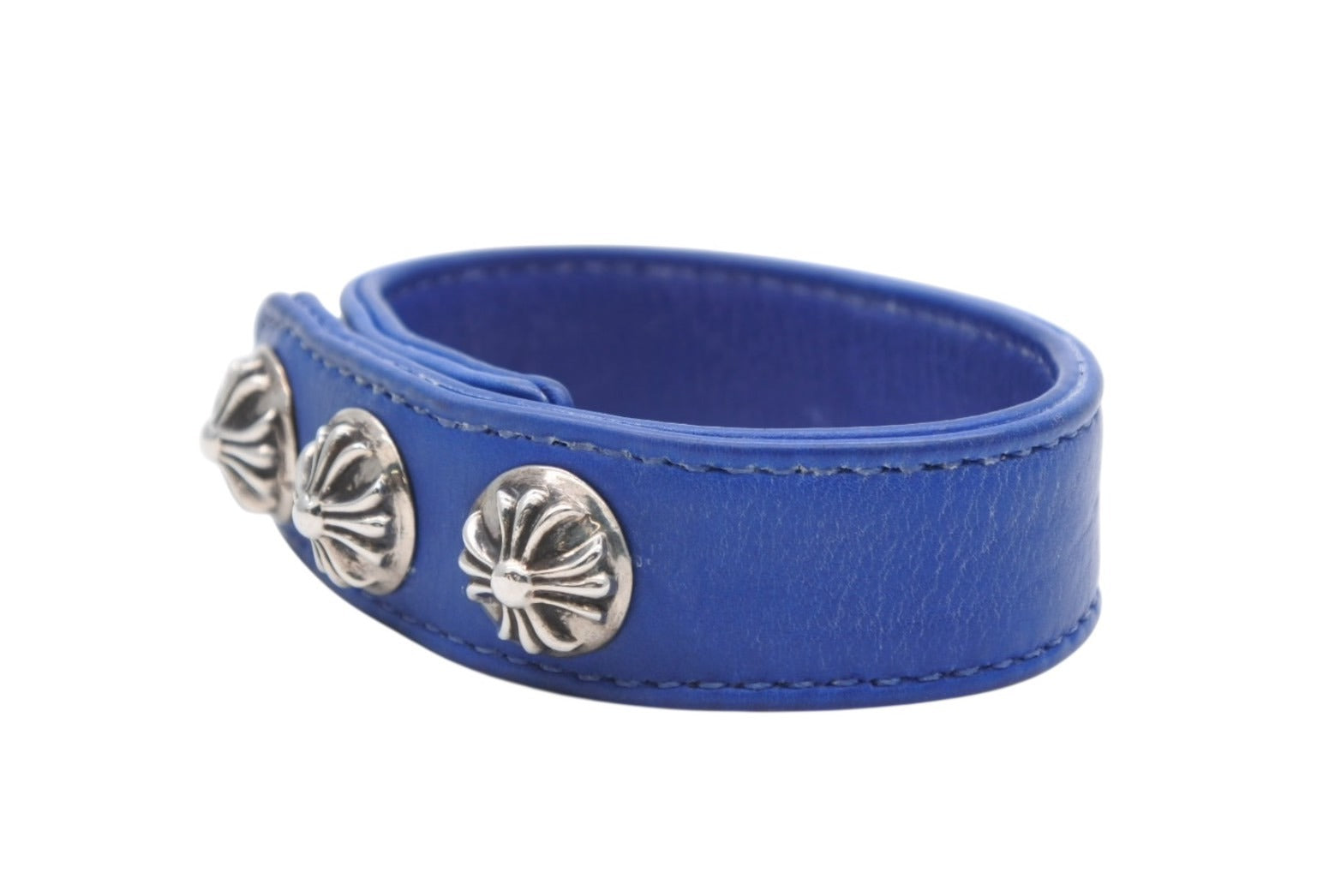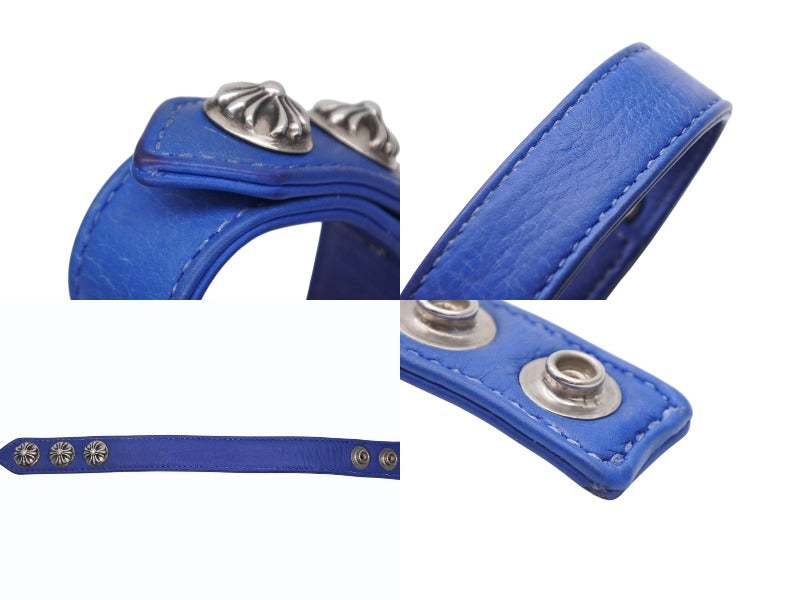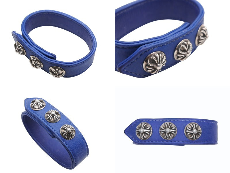 CHROME HEARTS クロムハーツ ブレスレット クロス 3BTN/2SNP 3ボタン2スナップ ブルー レザー シルバー925 美品 中古 4b009923