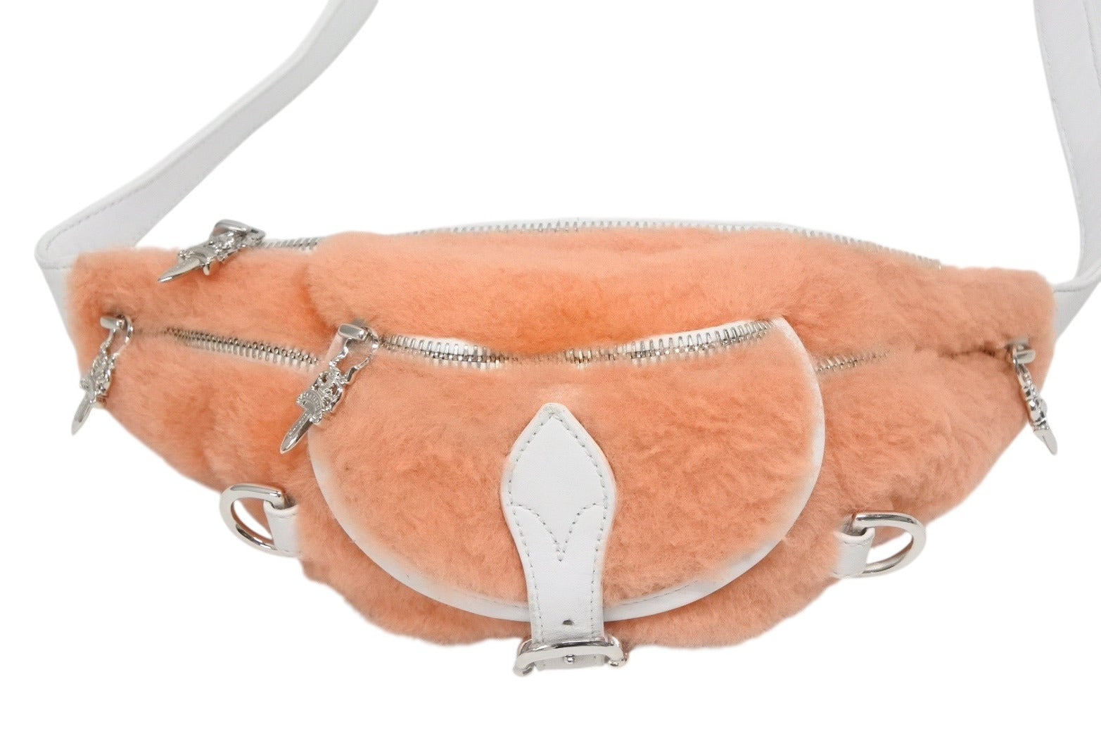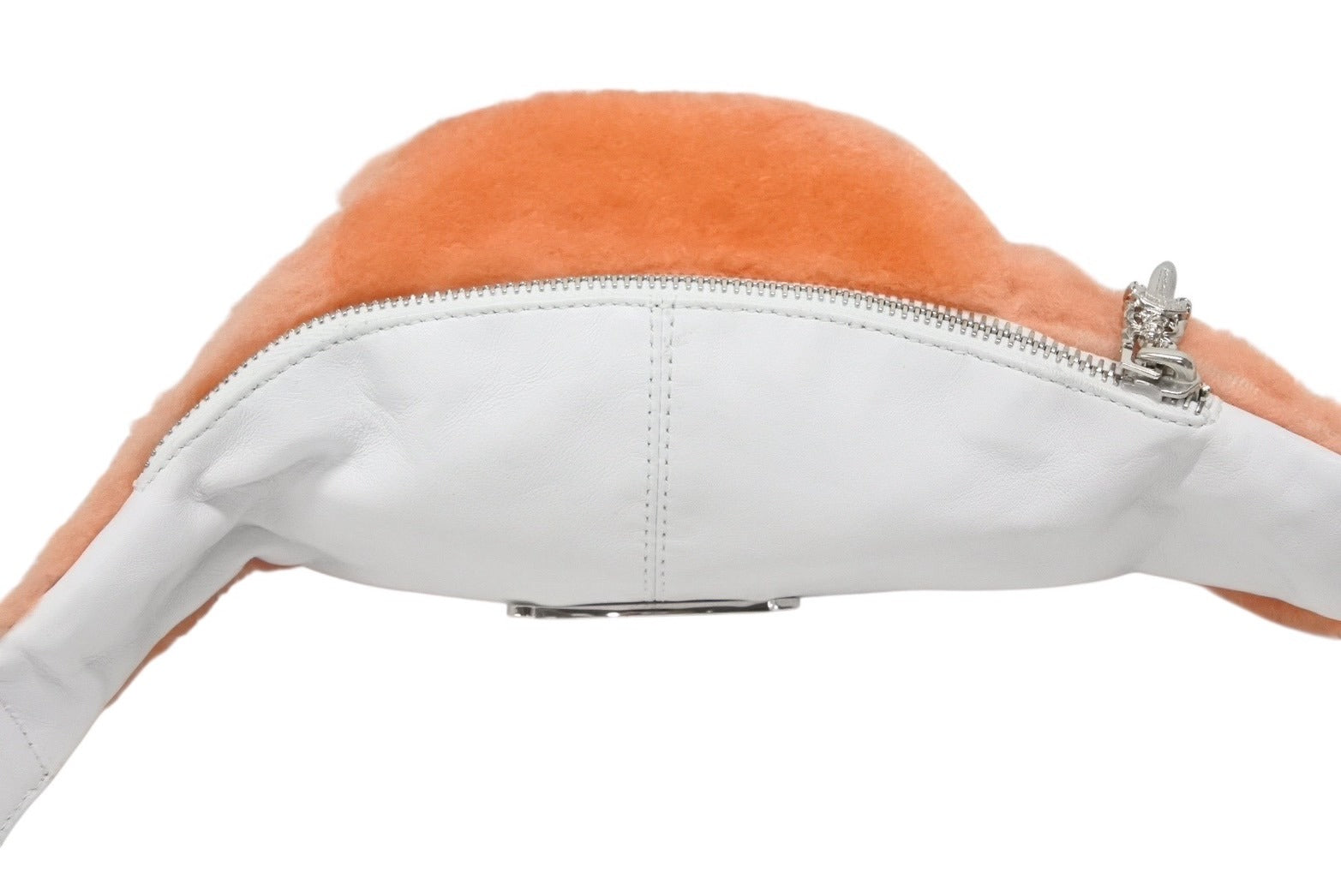 オレンジカラーのファーとレザーの組み合わせが可愛らしいショルダーバッグになります。