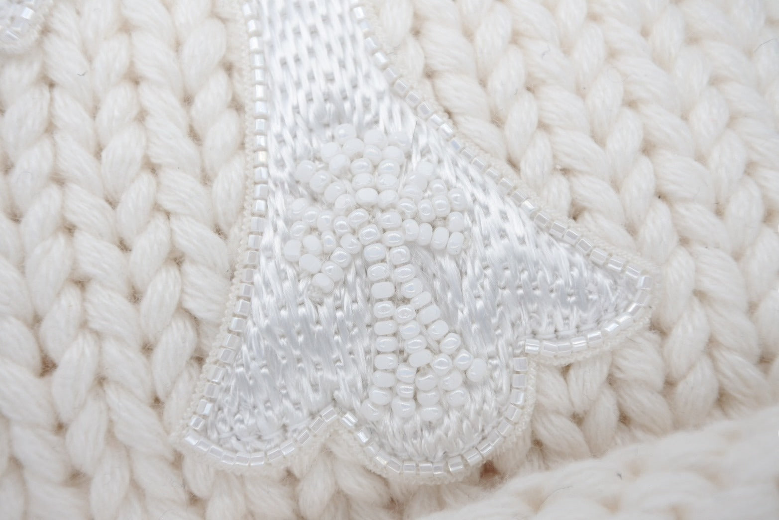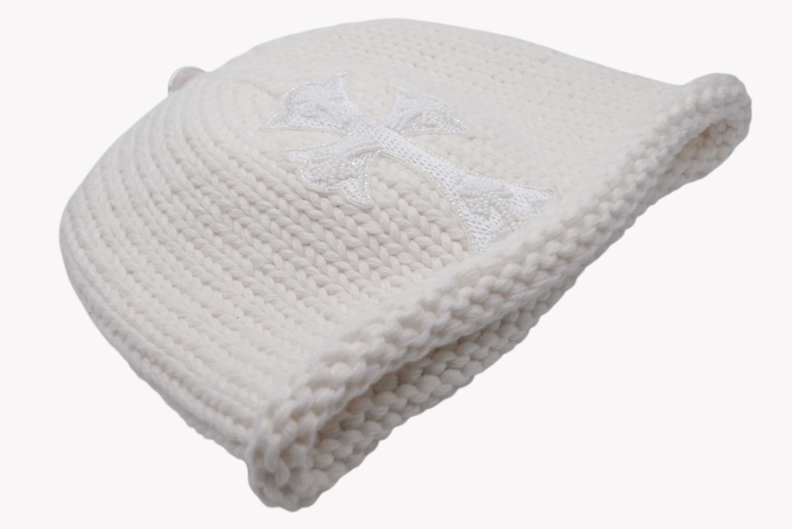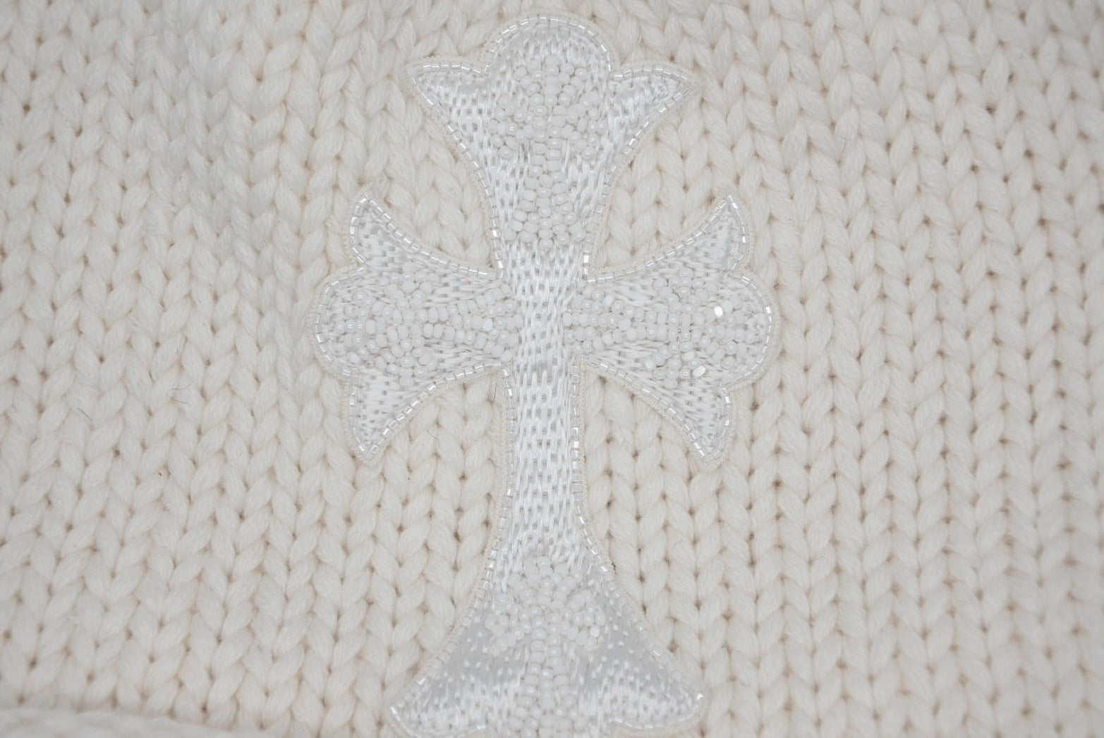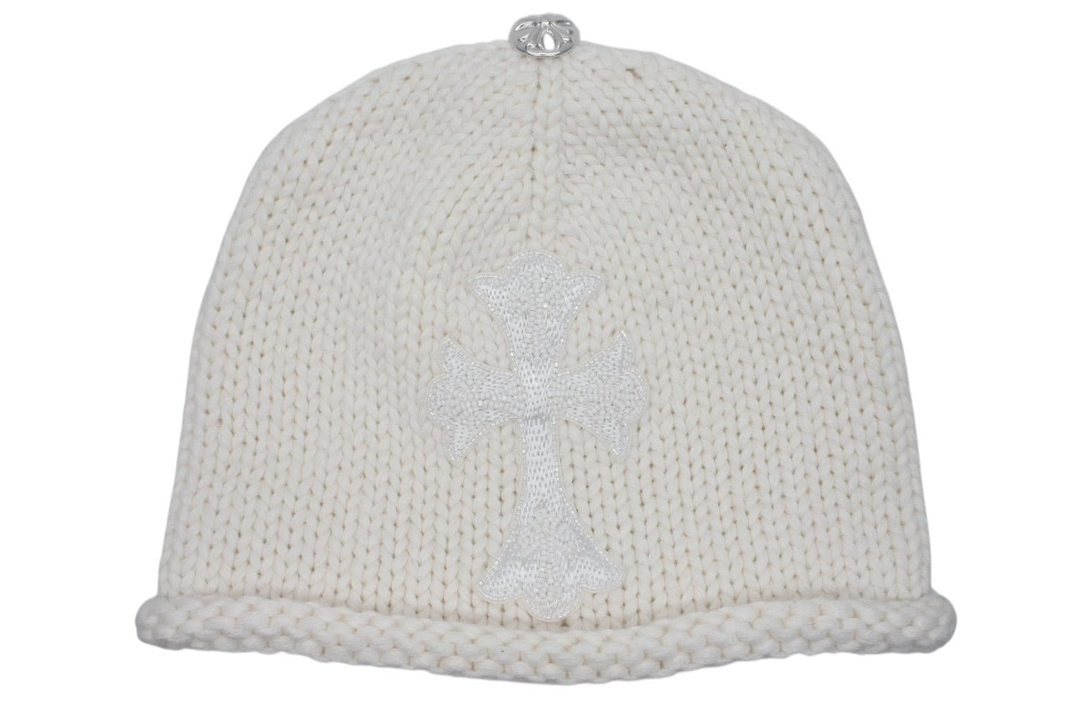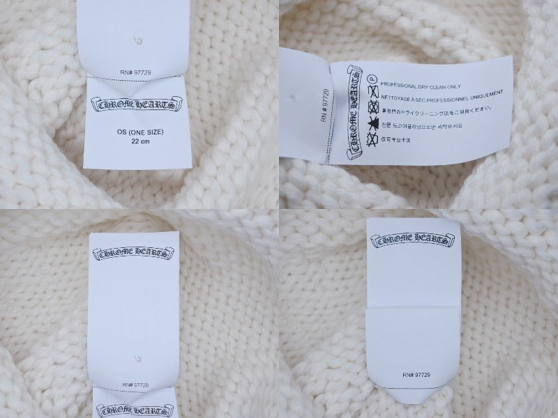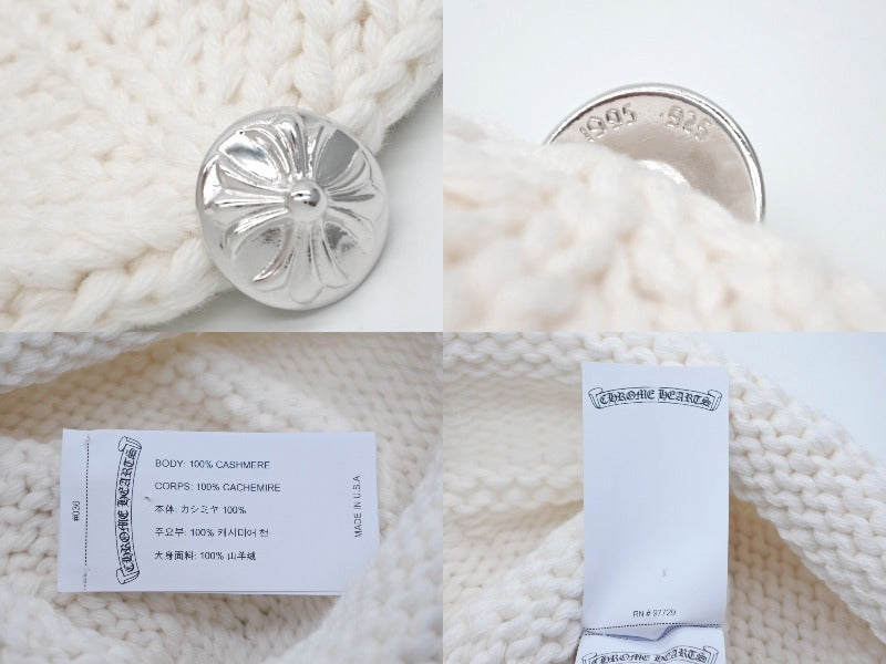 新品未使用 CHROME HEARTS クロムハーツ 新作 ニットキャップ ビーニー カシミヤ ビーズ クロスパッチ シルバー925 ホワイト 中古 4b010352