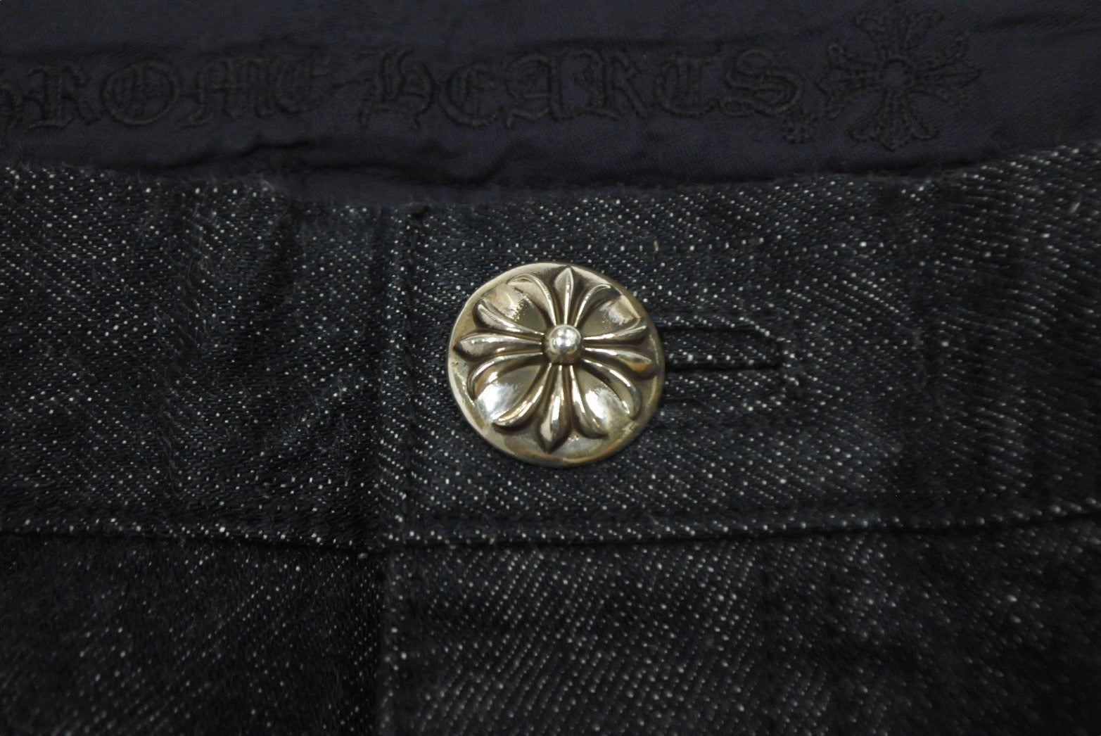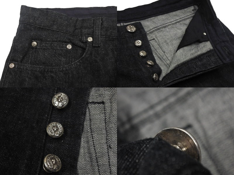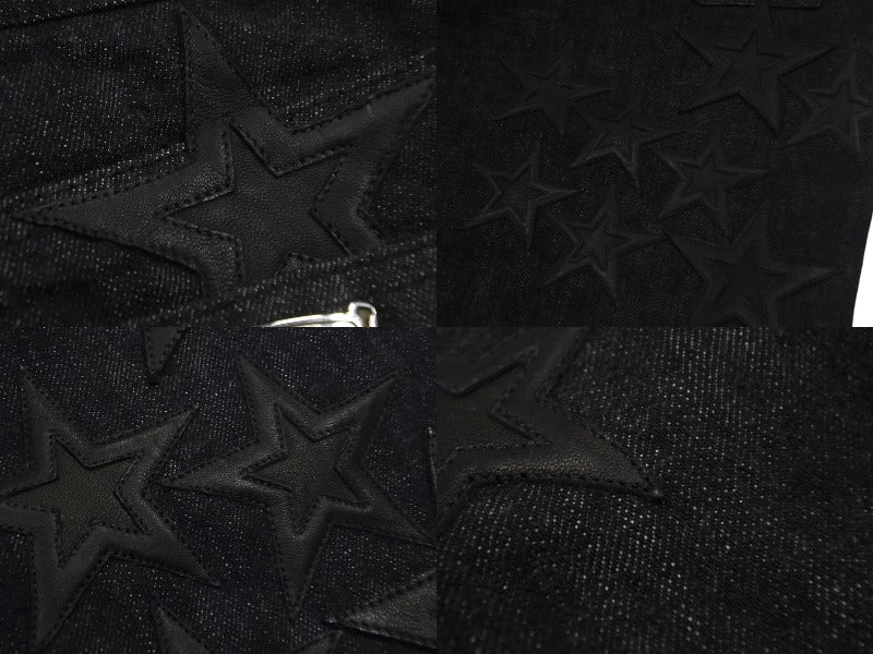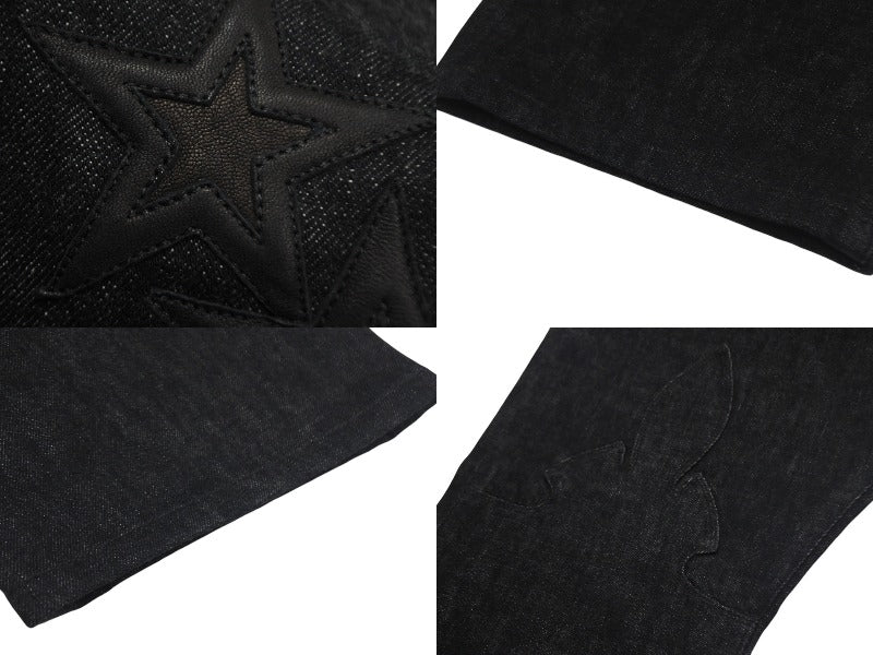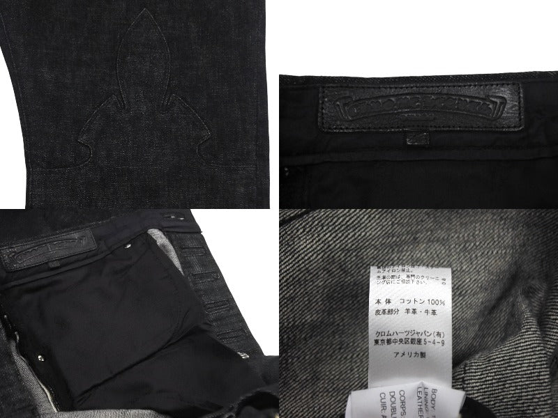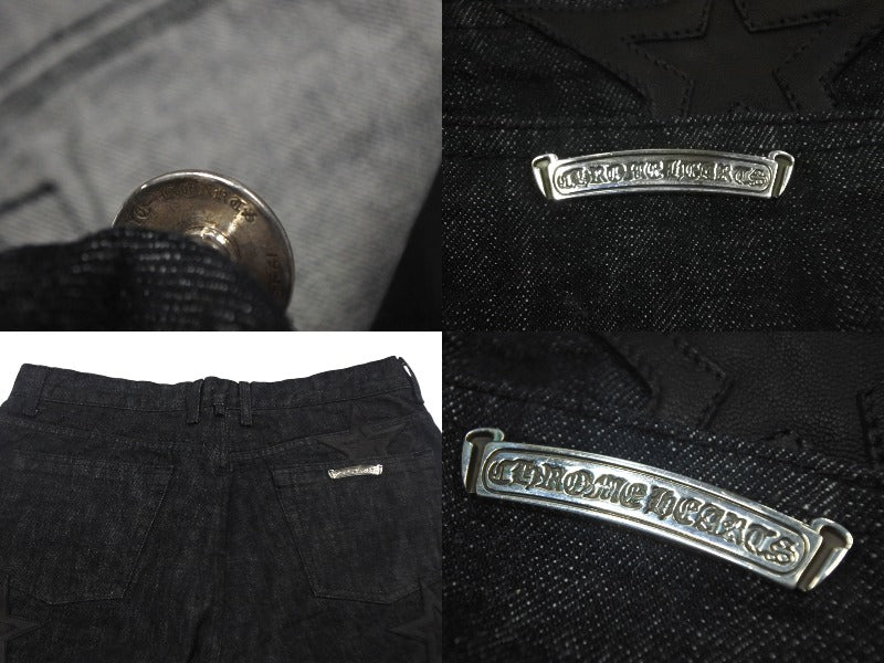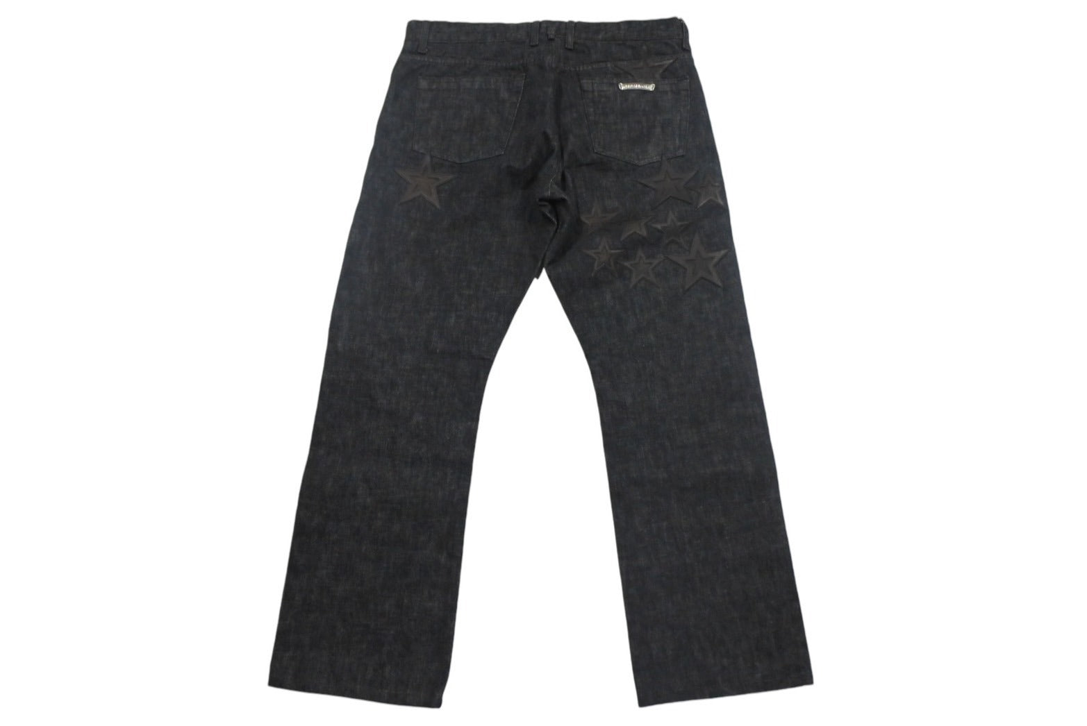新品未使用 CHROME HEARTS クロムハーツ フレアニー スターパッチ デニムパンツ サイズ36 ブラック コットン シルバー925 レザー 中古 4c069202