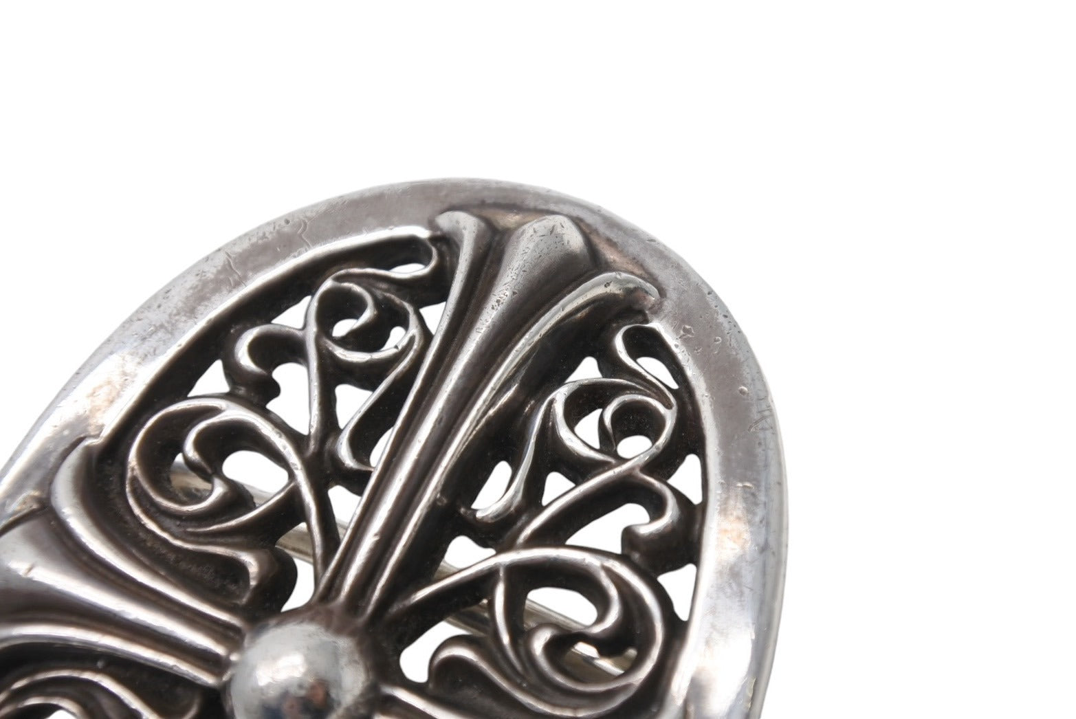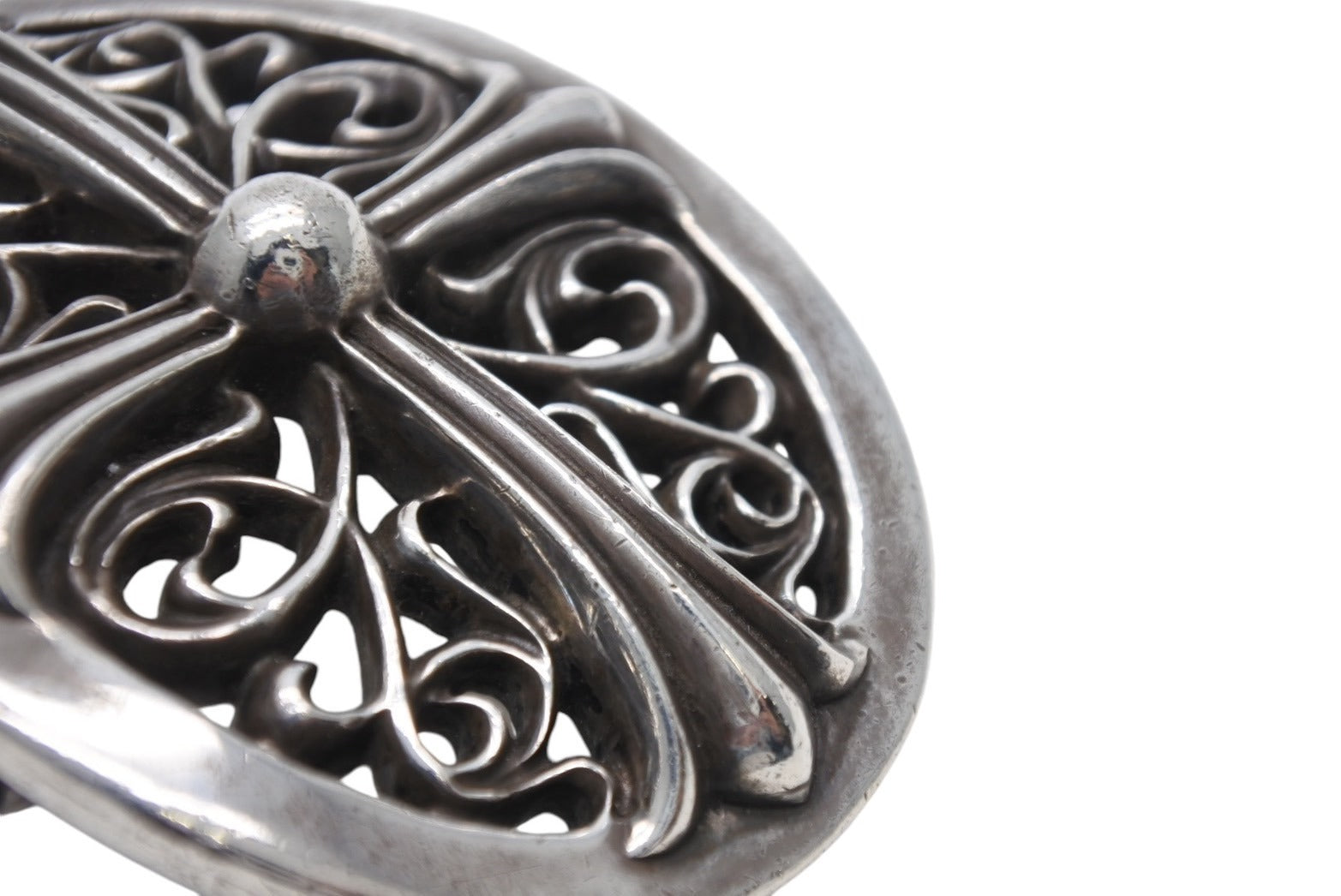 クロムハーツによくある存在感が健在でありつつ、上品で濃やかな細工が施され、見る人に宝石や王冠のような輝かしい印象を与えます。まるで花が咲いたような美しさです。