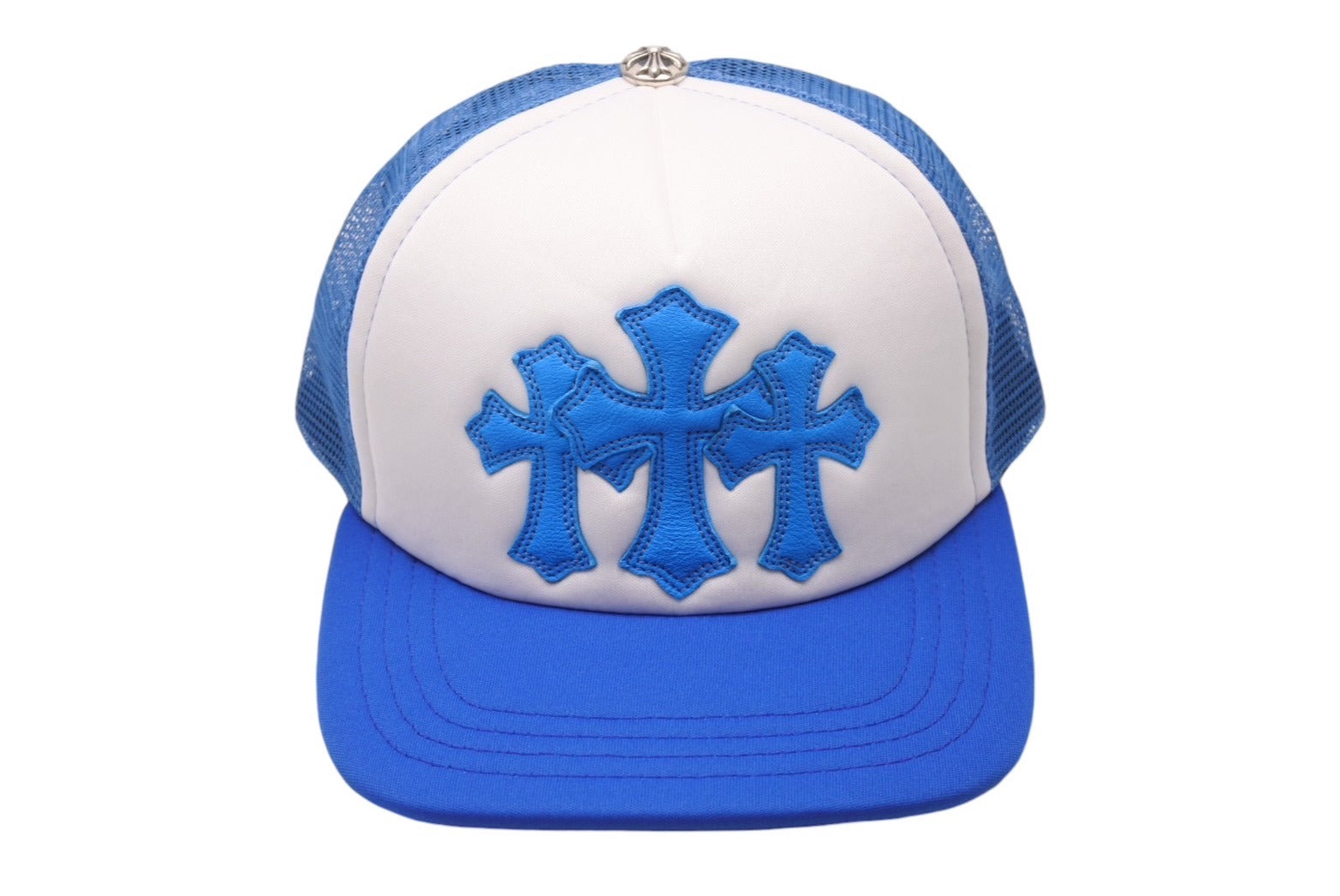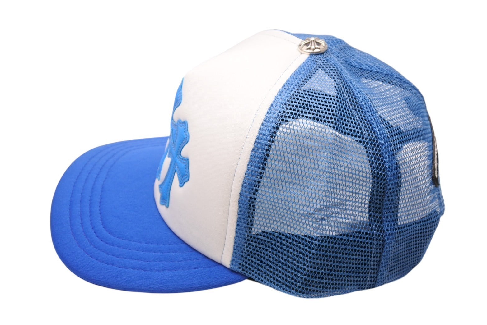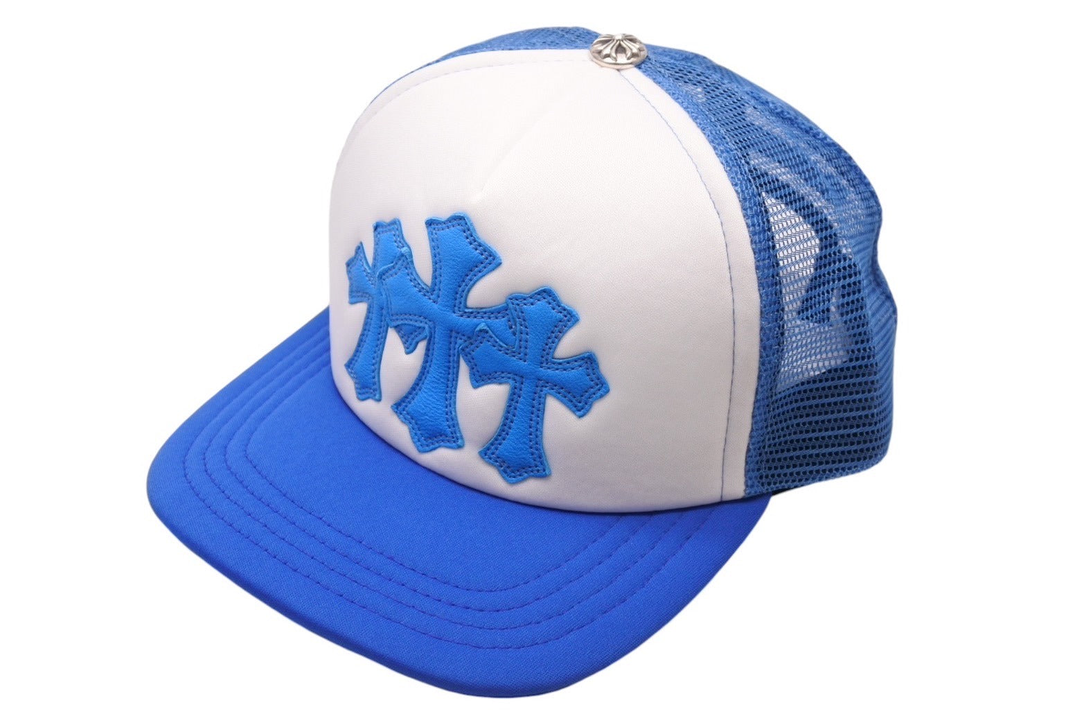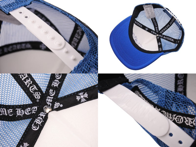 新品未使用 CHROME HEARTS クロムハーツ トラッカーキャップ CHクロスパッチ ONE SIZE メッシュ ブルー ホワイト シルバー925 中古 4c070147