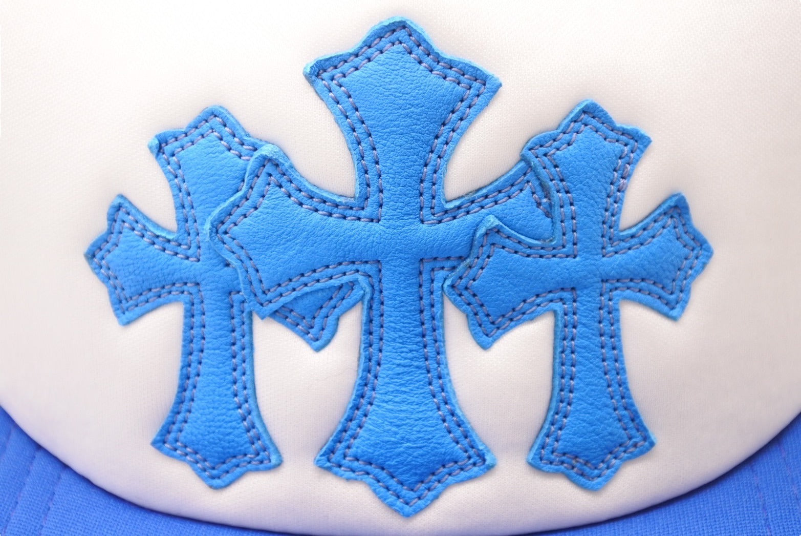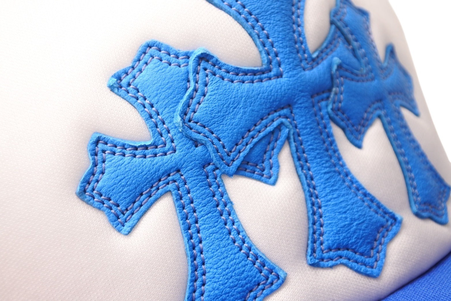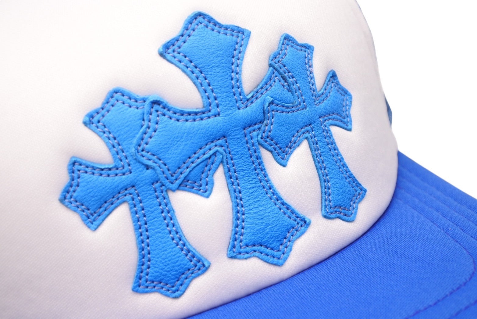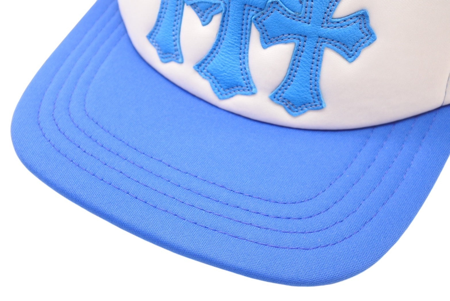 新品未使用 CHROME HEARTS クロムハーツ トラッカーキャップ CHクロスパッチ ONE SIZE メッシュ ブルー ホワイト シルバー925 中古 4c070147