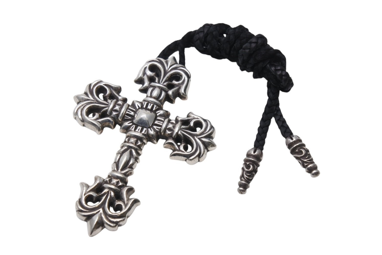 説明クロムハーツ ラージフィリグリークロス wレザーブレイド ネックレスです。
