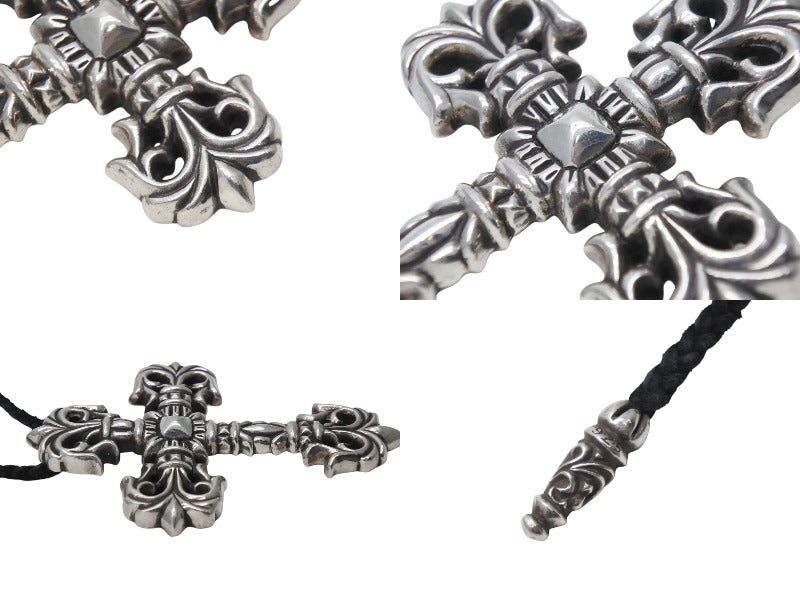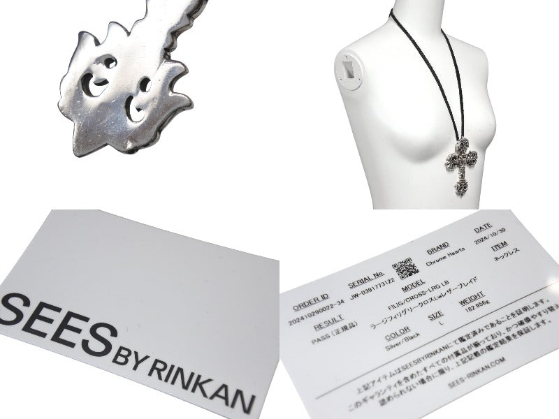 CHROME HEARTS クロムハーツ ラージフィリグリークロス Wレザーブレイド ネックレス 重量約183.1g 全長約89cm シルバー925 美品 中古 4c070167
