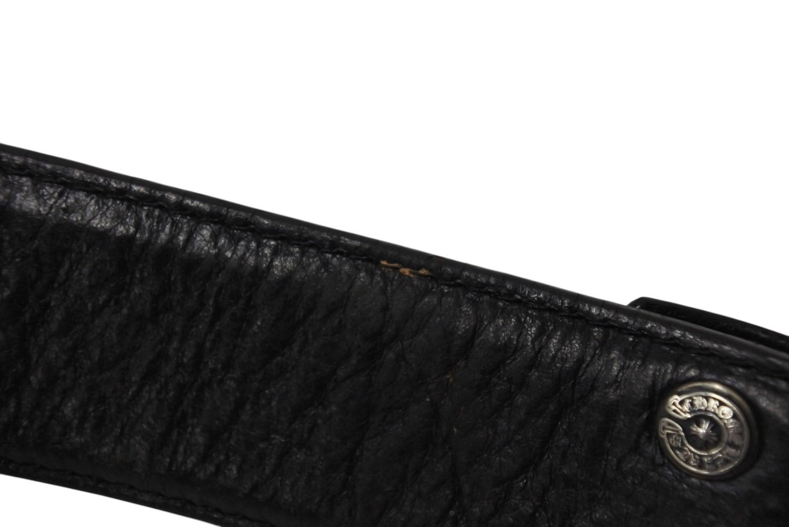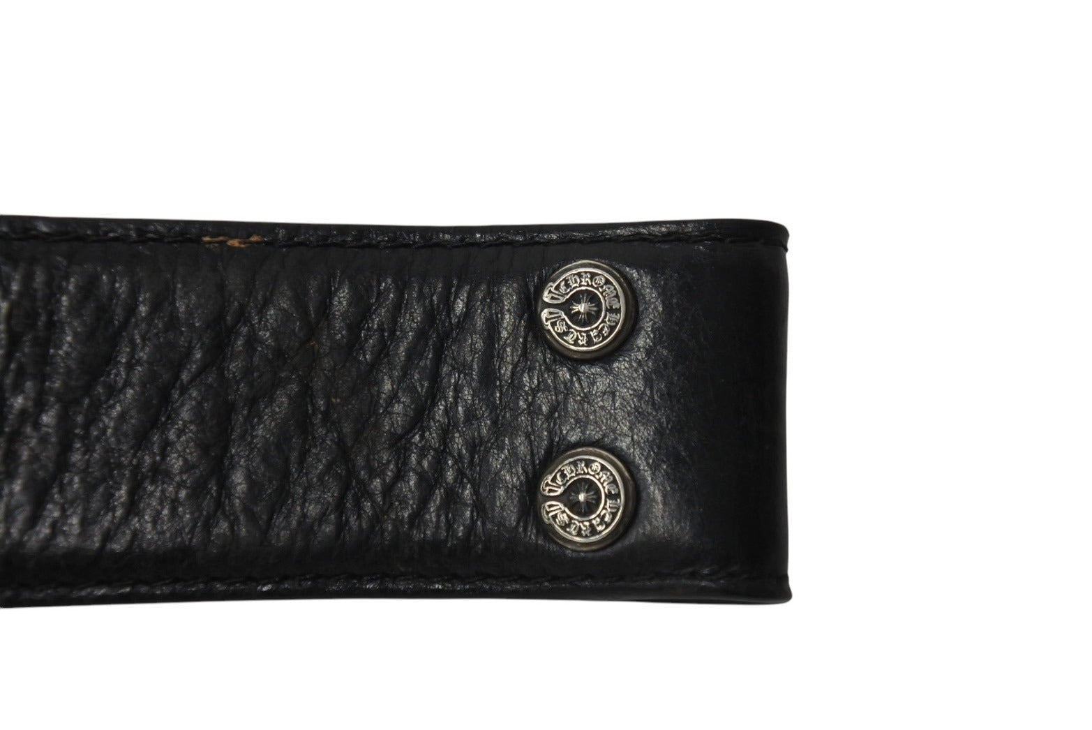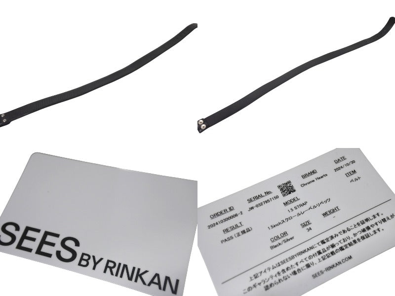 CHROME HEARTS クロムハーツ 1.5inch スクロールレーベルリベッツ ベルト ストラップ サイズ34 ブラック レザー シルバー925 良品 中古 4c070169