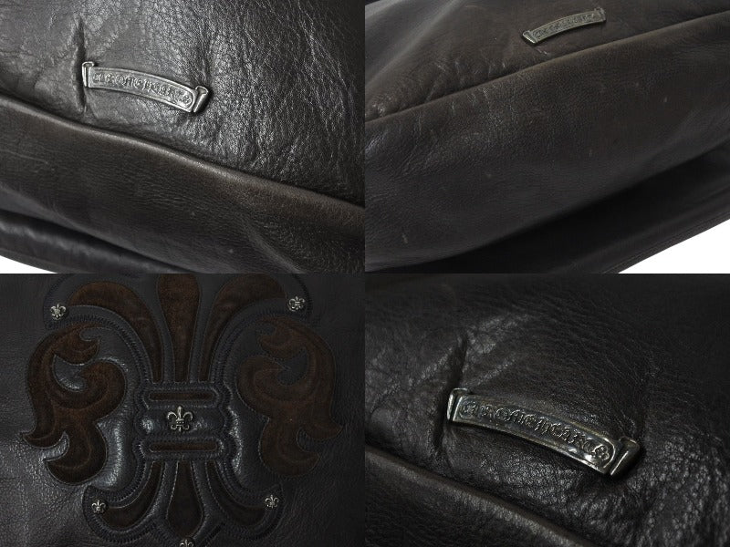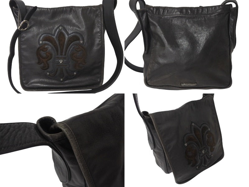 極美品 CHROME HEARTS クロムハーツ メッセンジャーバッグ BAG-MAIL BS FLR BSフレア ブラウン シルバー ブラック レザー 中古 4c071678